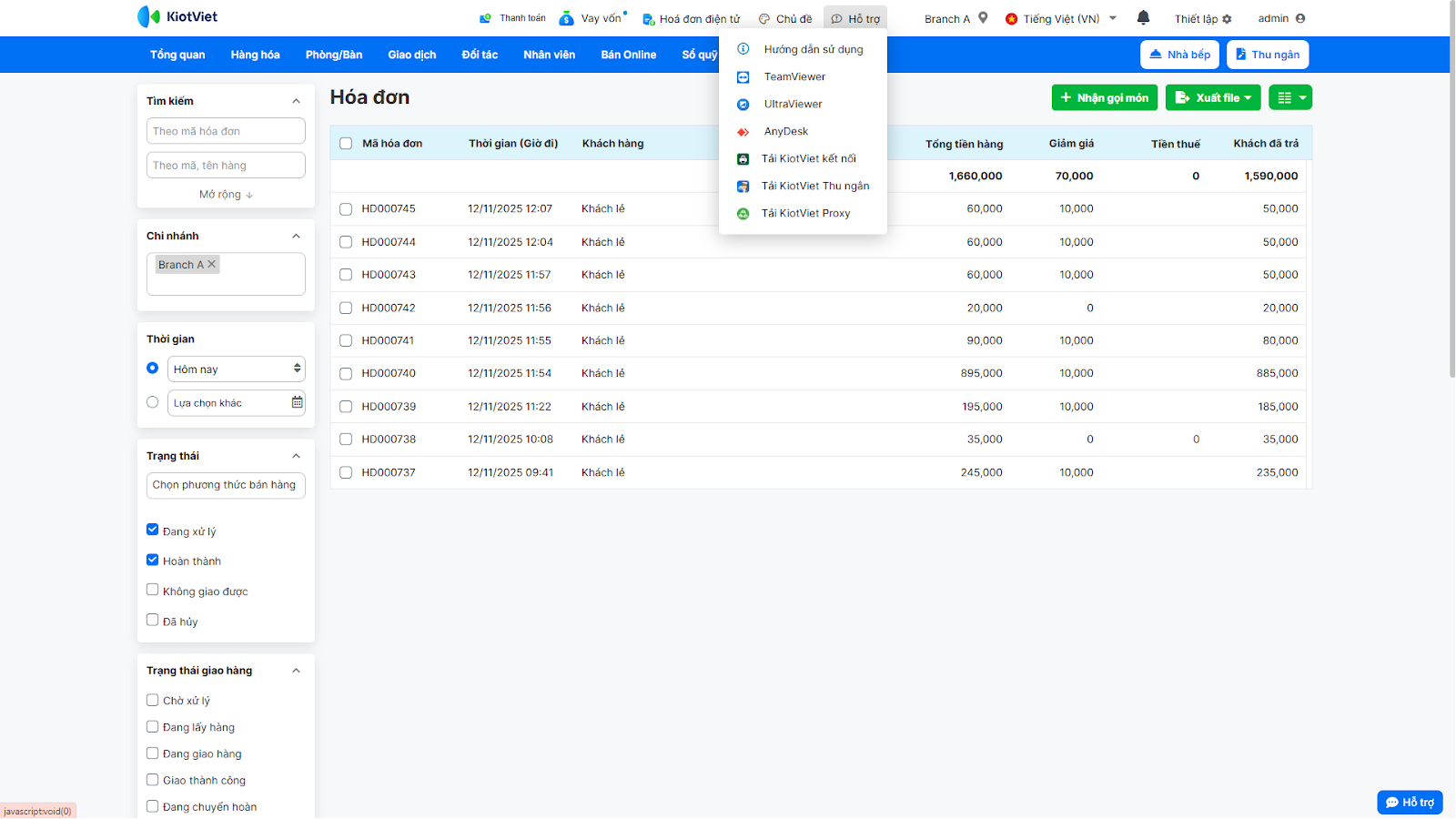 - Trên màn hình quản lý KiotViet, vào mục Hỗ trợ -> App KiotViet Kết Nối để tải về và cài đặt.