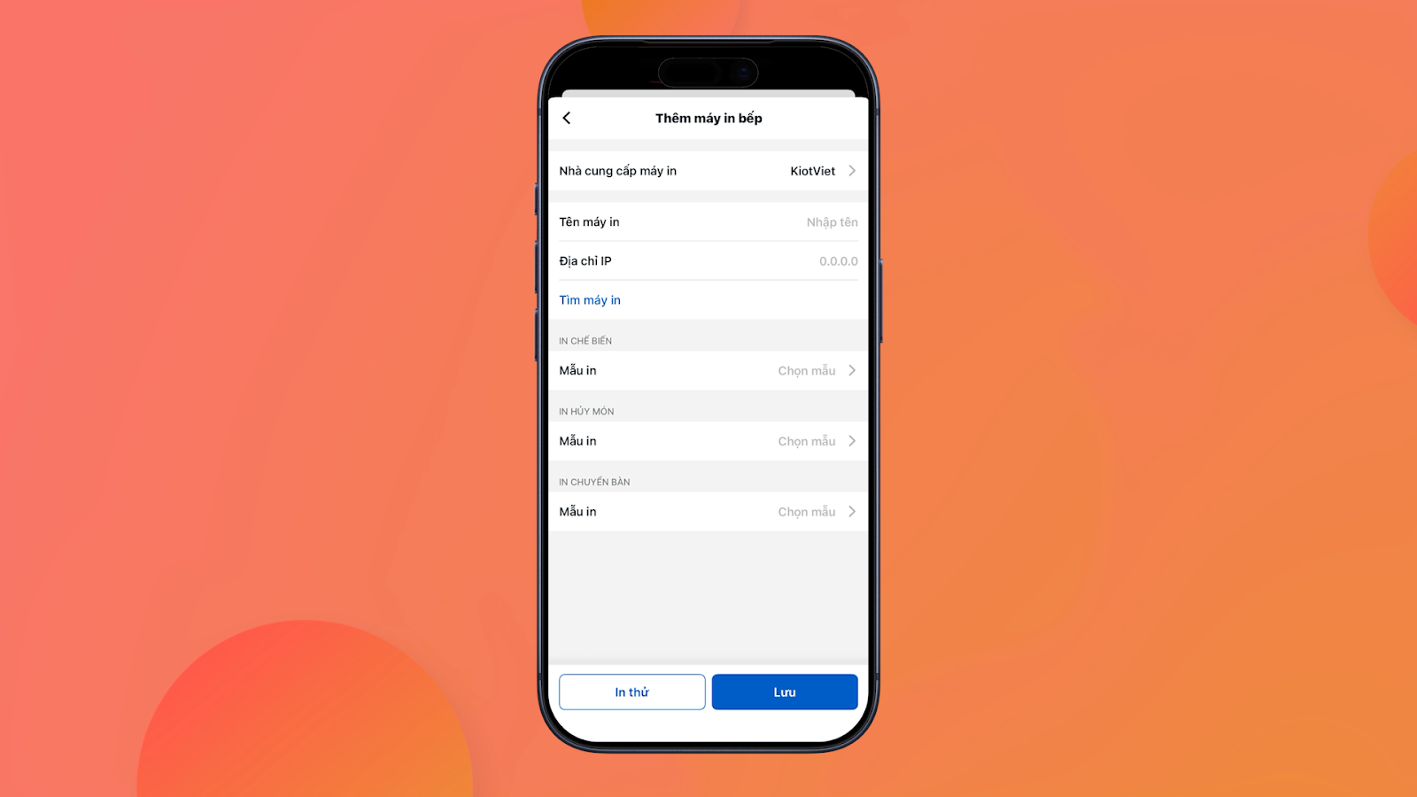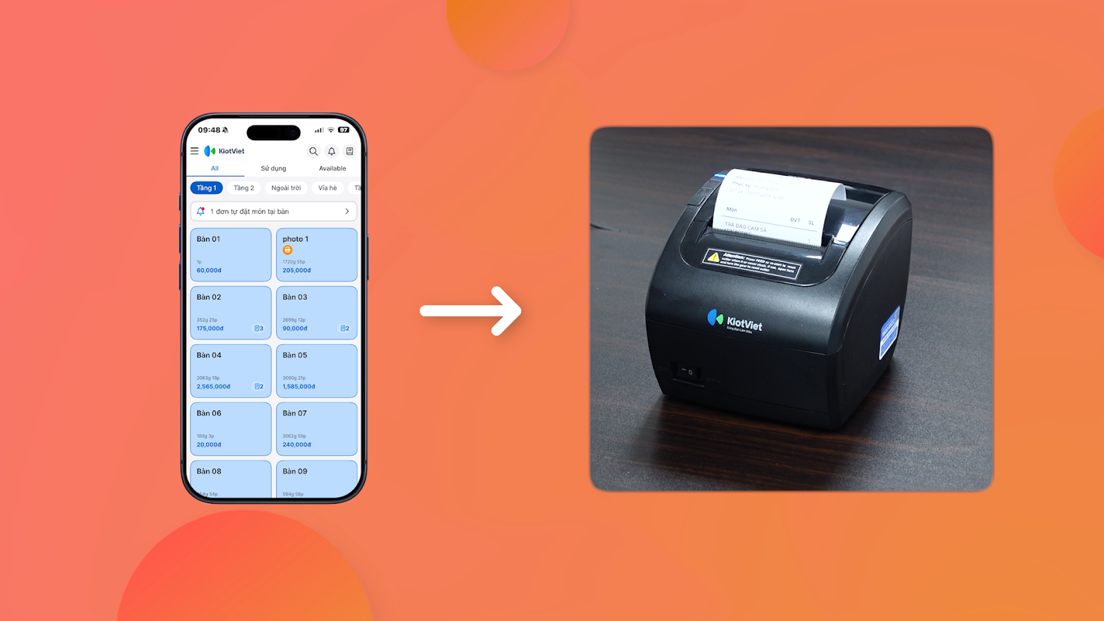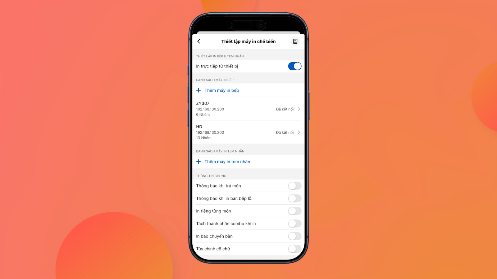 - Tình huống: Khi bạn không dùng máy tính hay máy POS, và muốn điện thoại của nhân viên gửi lệnh in thẳng đến máy in bếp đã kết nối mạng LAN.