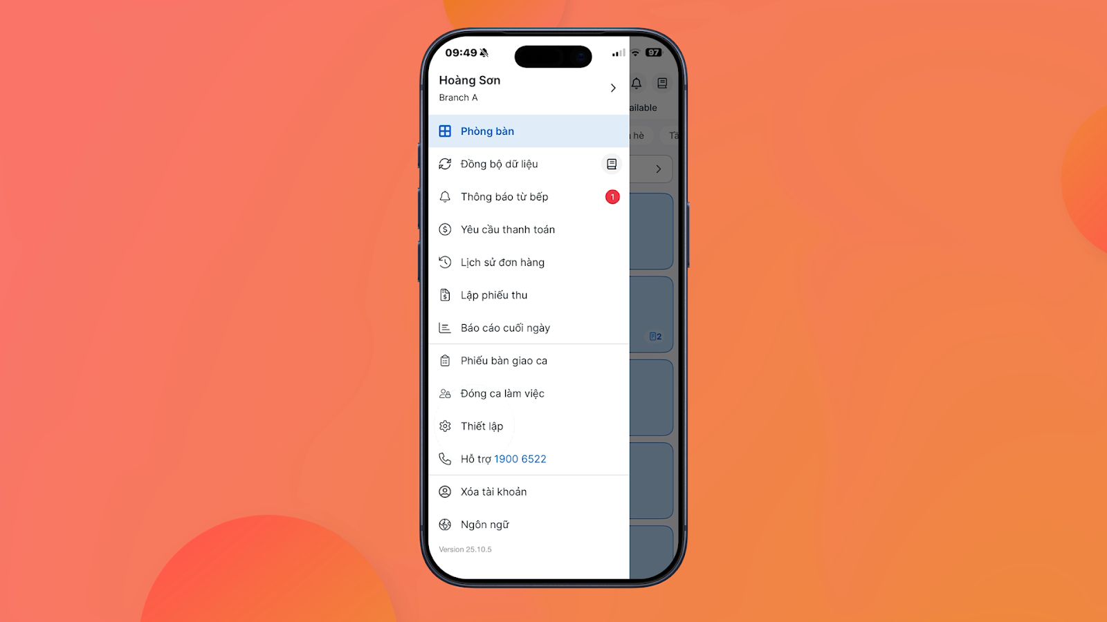 - Từ lúc này, mọi lệnh Thông báo từ điện thoại của nhân viên sẽ được chuyển đến máy POS để xử lý và in ra.