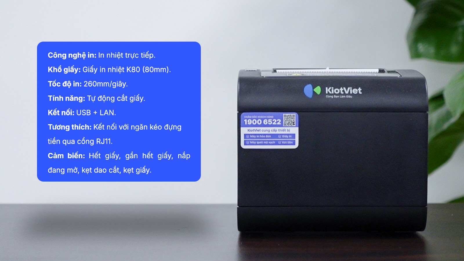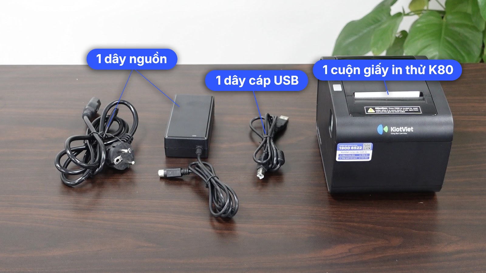 - Khổ giấy: Giấy in nhiệt K80 (80mm).
