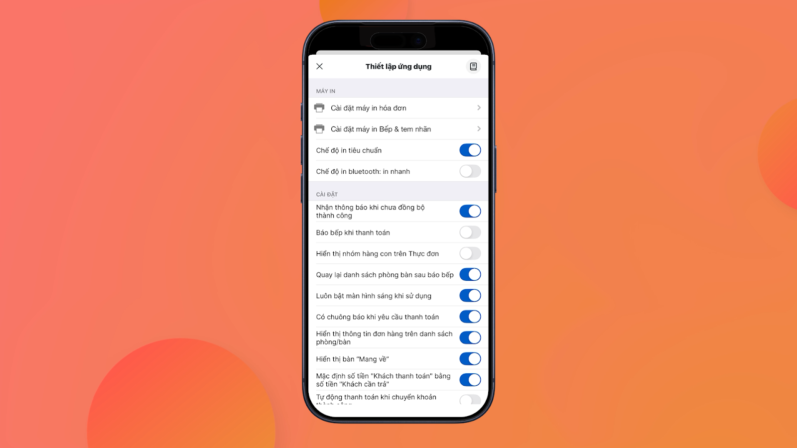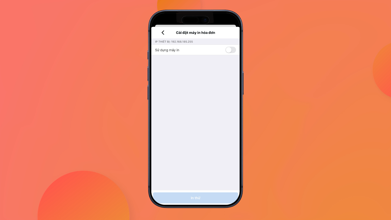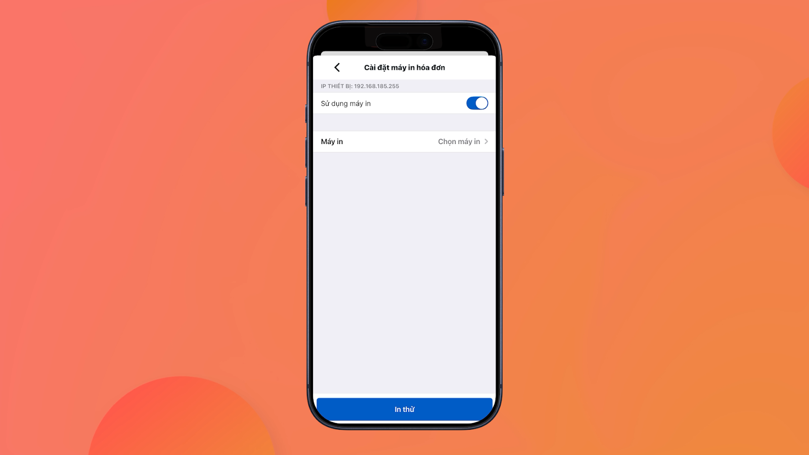 Tính năng Máy In Hóa Đơn trên ứng dụng di động hỗ trợ cửa hàng thực hiện các thao tác: Kết nối và in hóa đơn qua mạng LAN