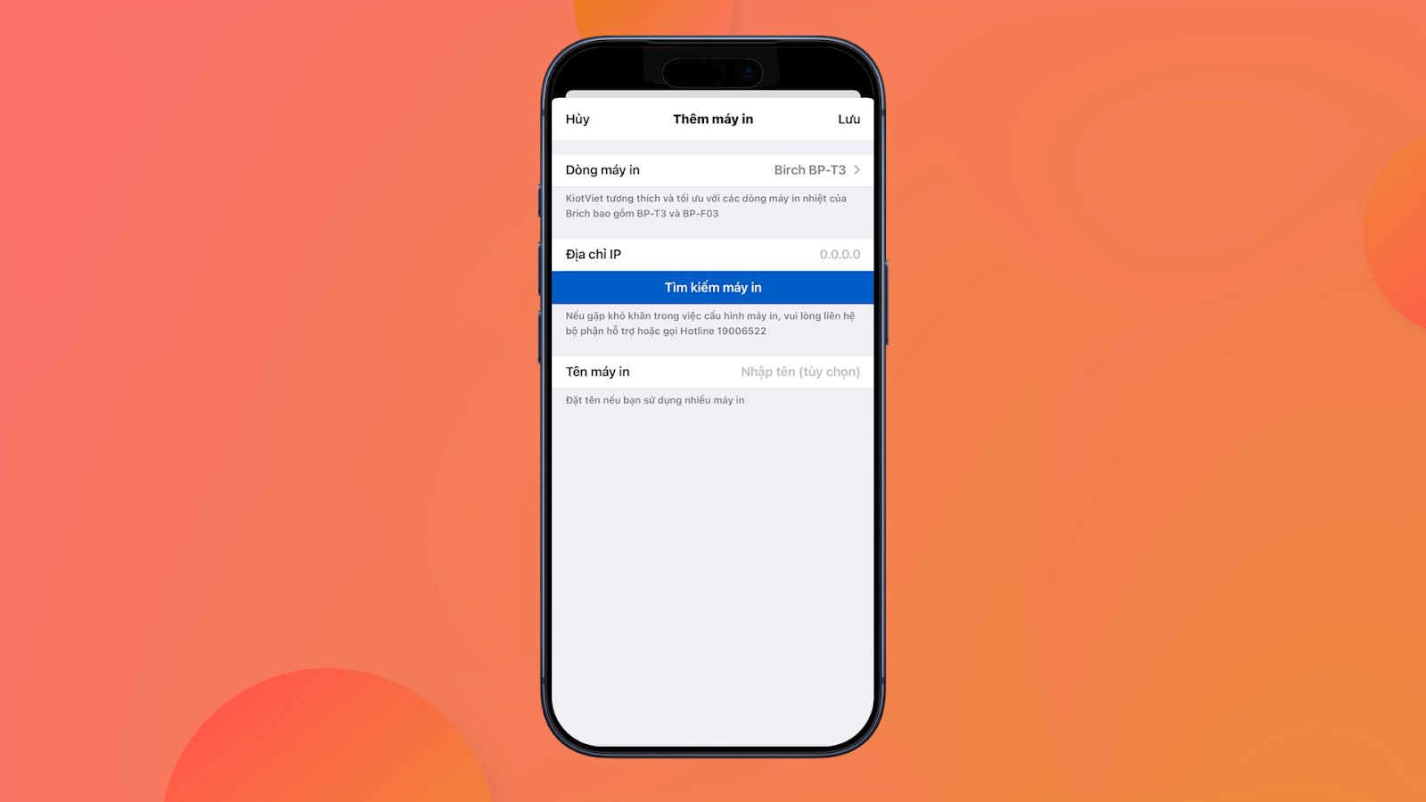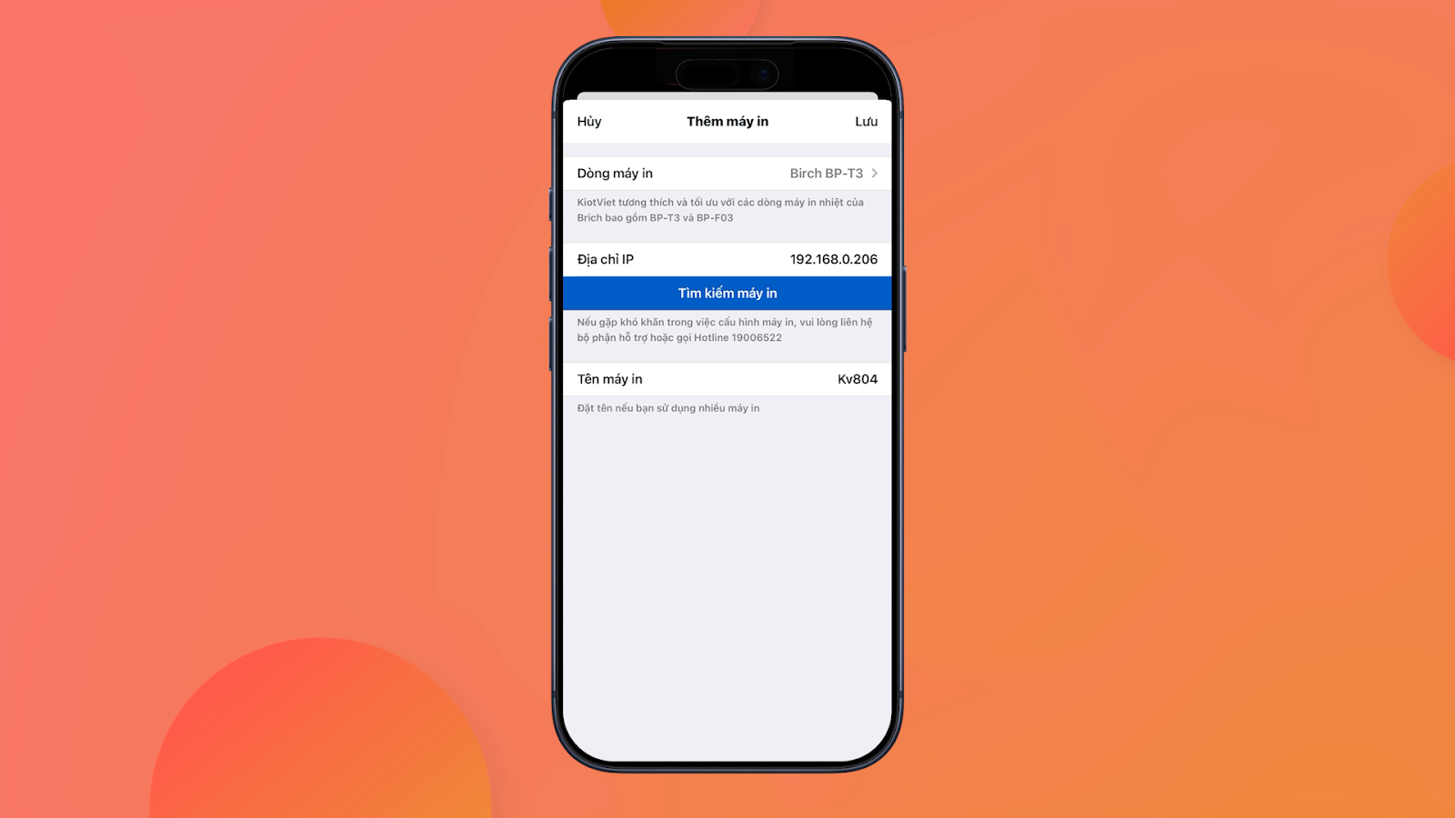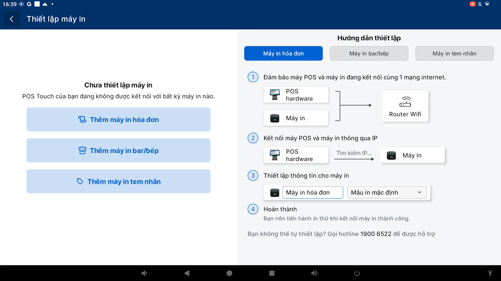 - Tình huống: Bạn cần thêm máy in mạng vào ứng dụng trên máy POS để in hóa đơn. Tình huống này yêu cầu bạn đã hoàn thành việc cấu hình IP cố định cho máy in cùng dải mạng với máy POS.
