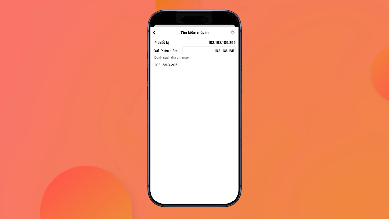 - Bấm Tìm kiếm máy in và chọn Số IP của máy in do hệ thống nhận diện.