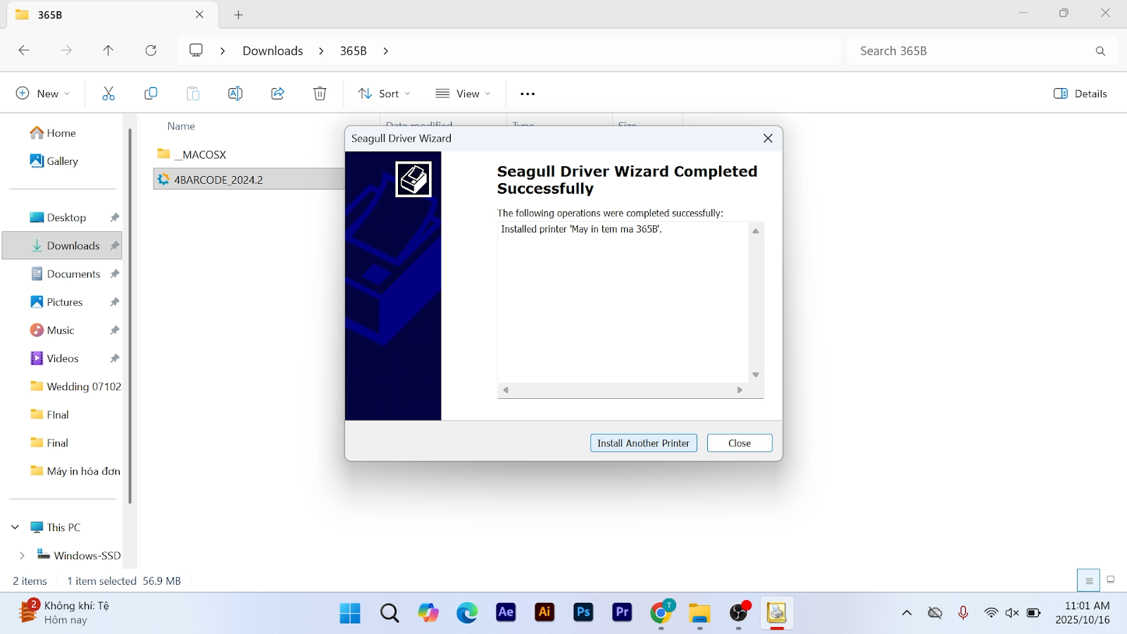 - Tải về và chạy file cài đặt Driver cho máy in 365B.