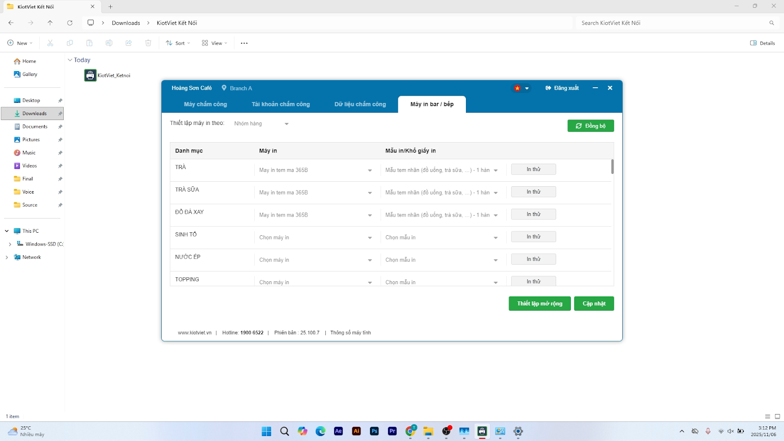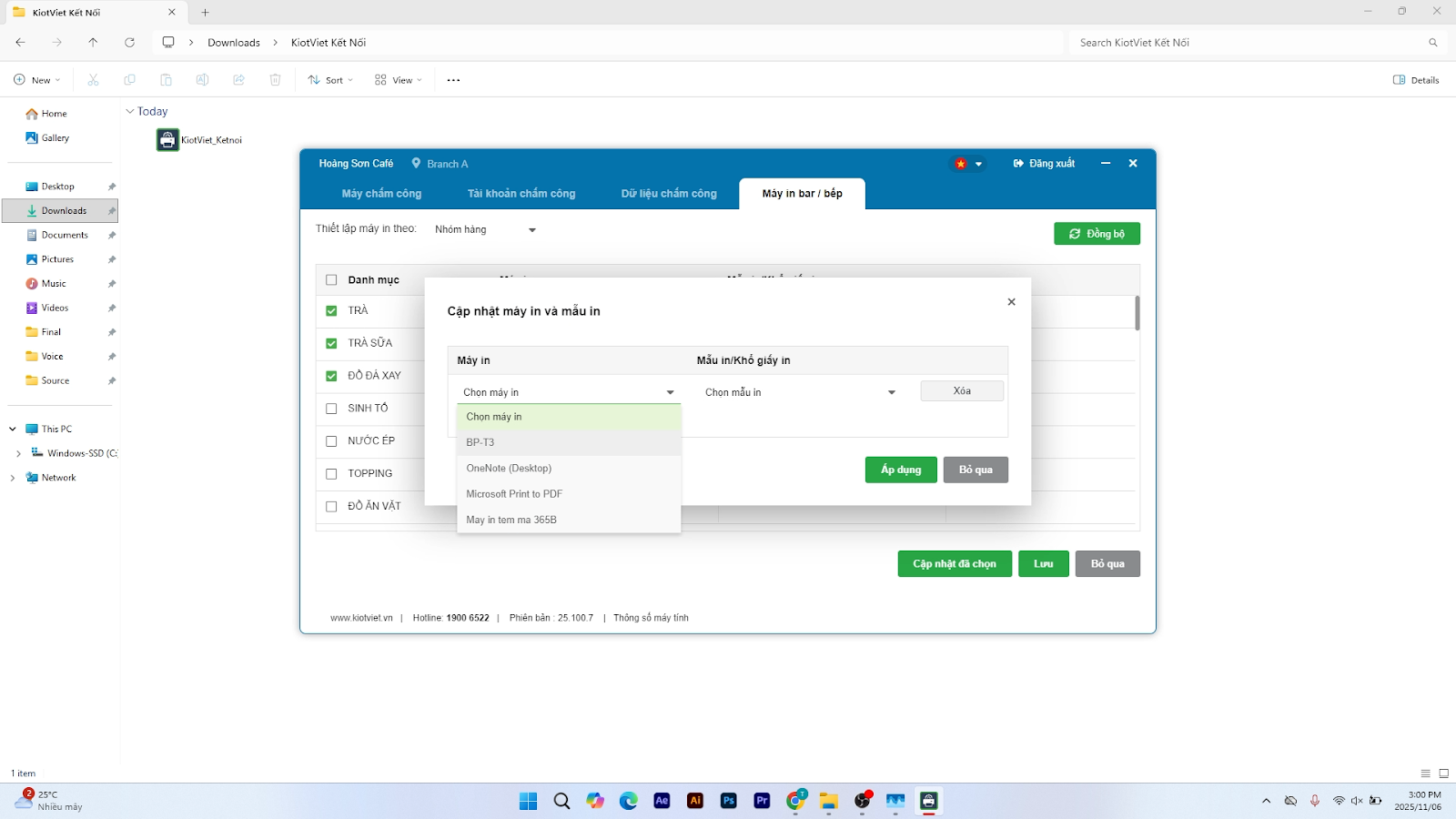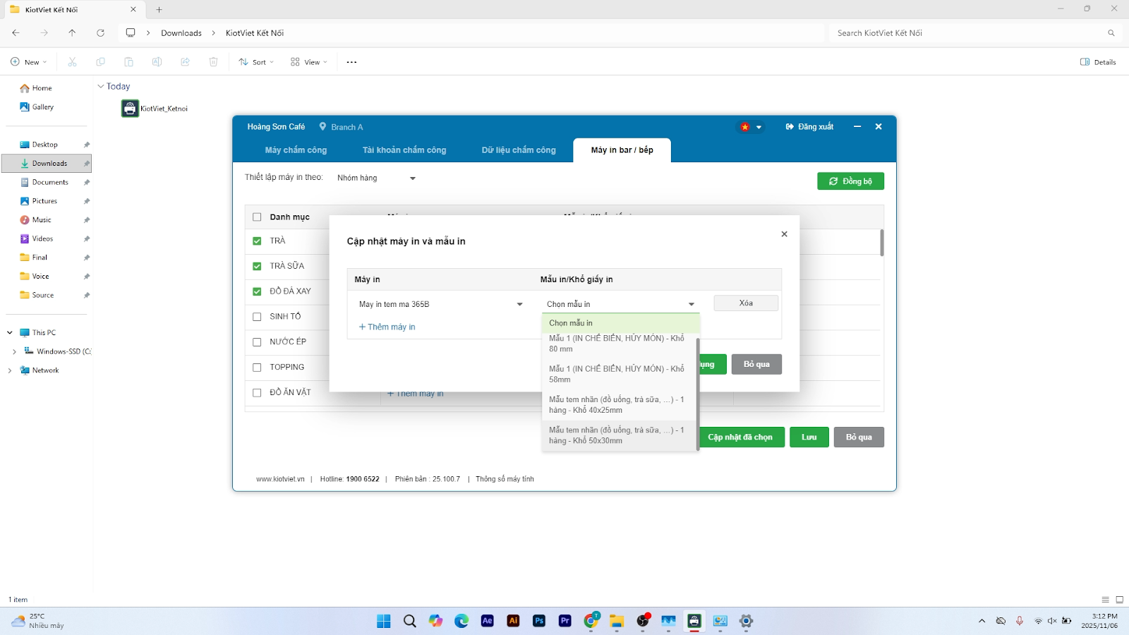 - Tình huống: Cửa hàng bạn đã cài đặt máy in tem thông qua máy tính và App KiotViet Kết Nối (như Phần II).