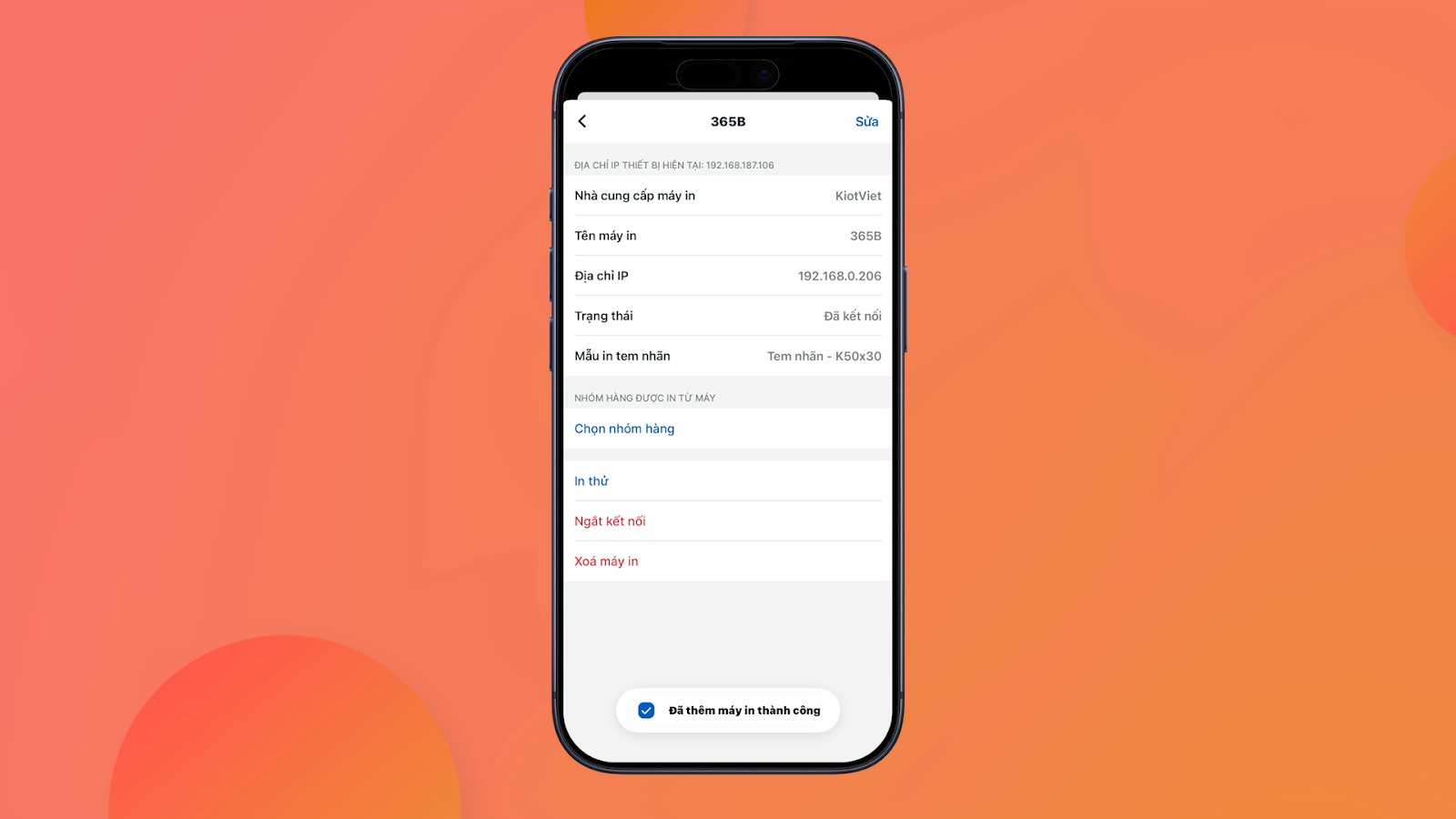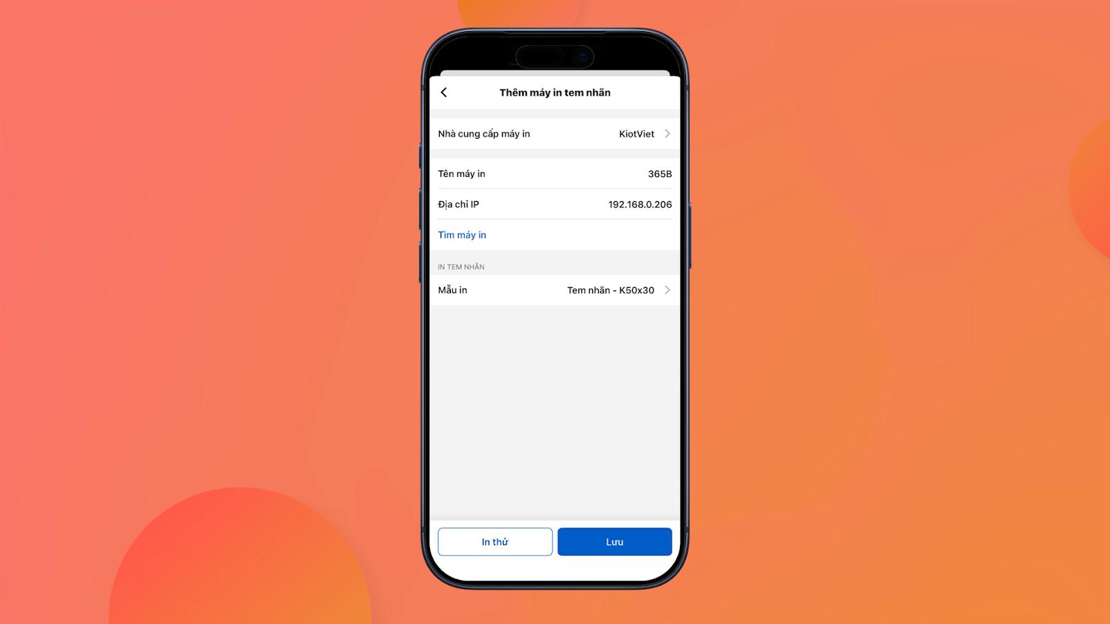 - Tình huống: Khi bạn không dùng máy tính hay máy POS, và muốn điện thoại của nhân viên gửi lệnh in thẳng đến máy in tem đã kết nối mạng LAN.
