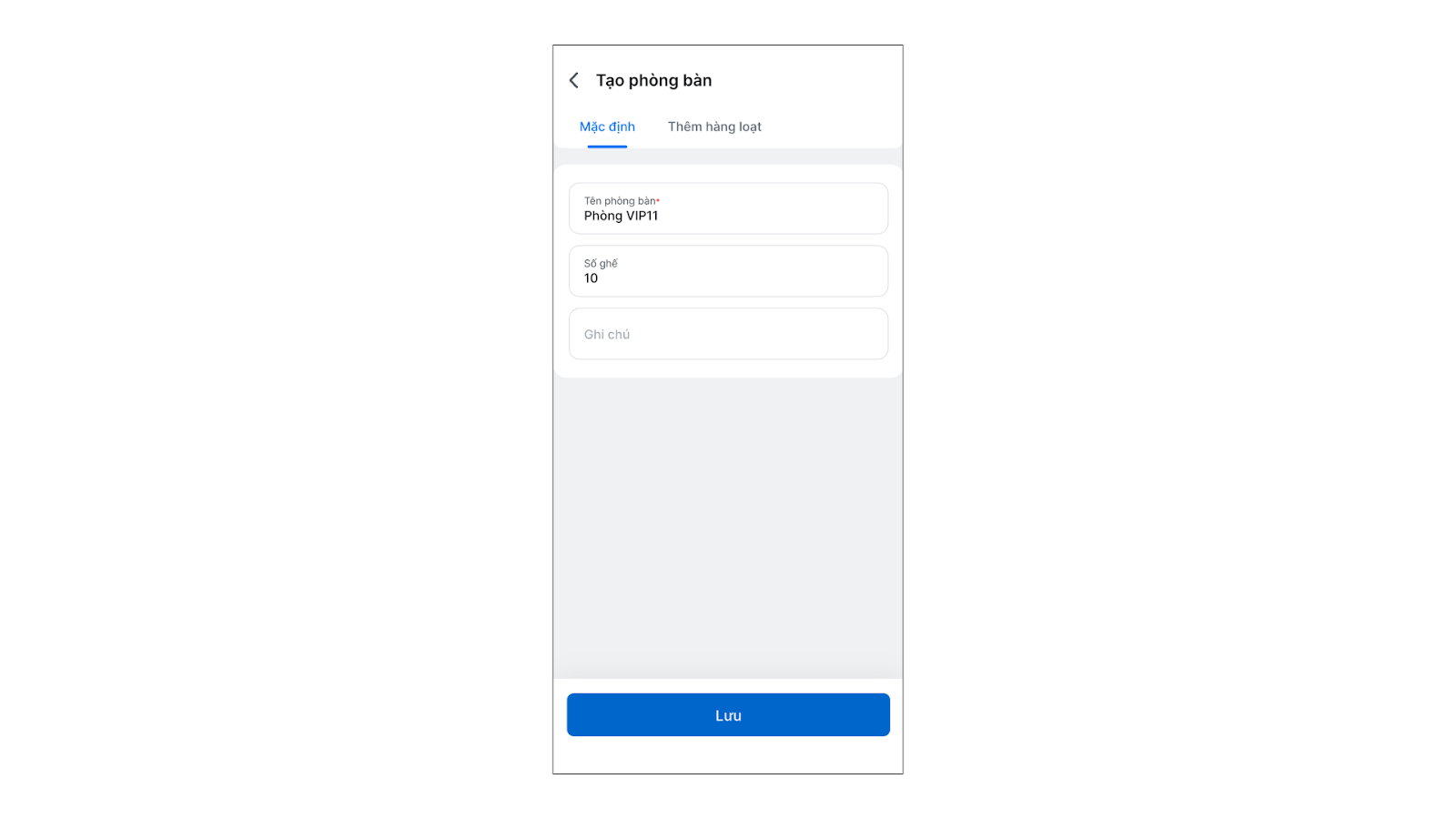 - Nhập thông tin Tên phòng bàn, Ghi chú (nếu có).