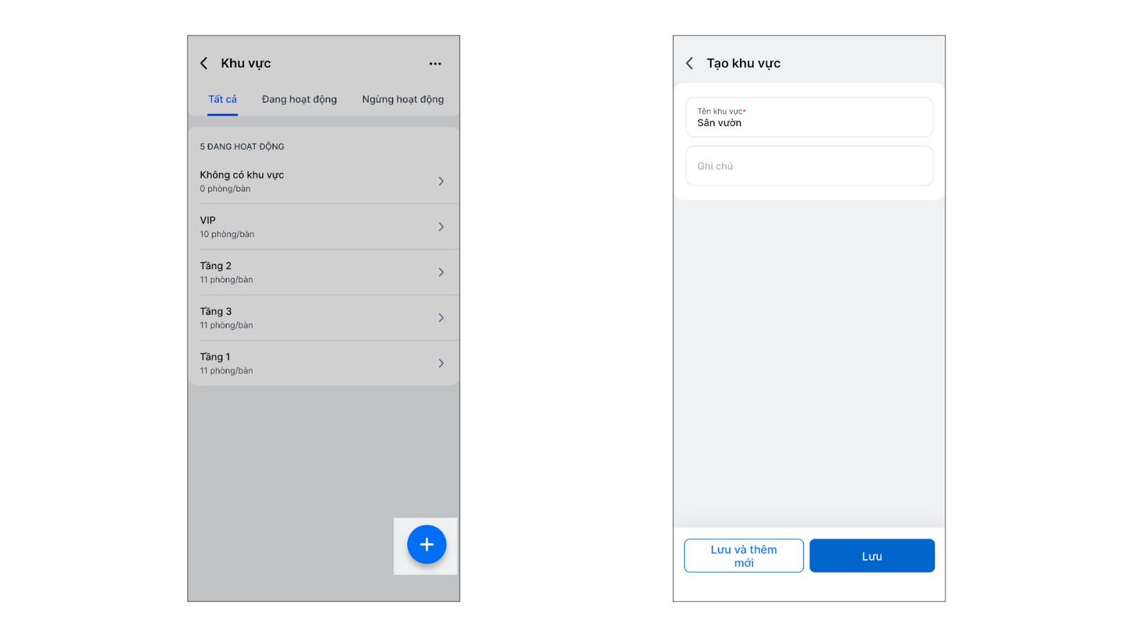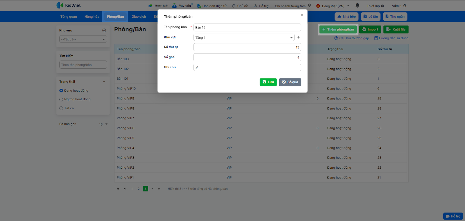 2. Thêm phòng/bàn