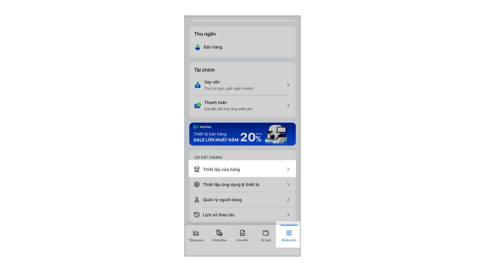 - Trên menu Nhiều hơn, bạn chọn Thiết lập cửa hàng.