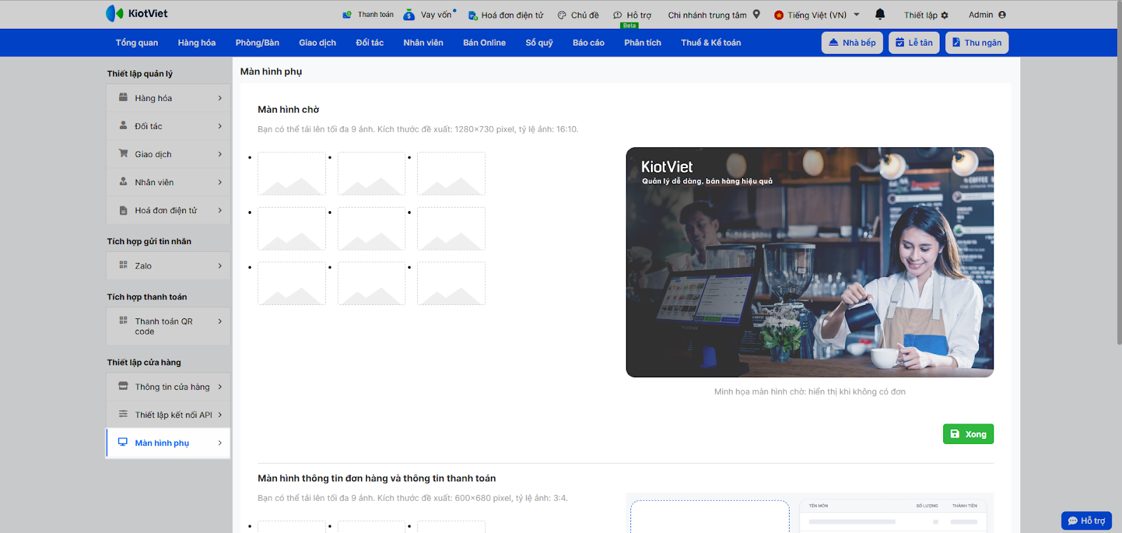 - Tại Thiết lập cửa hàng → Màn hình phụ.