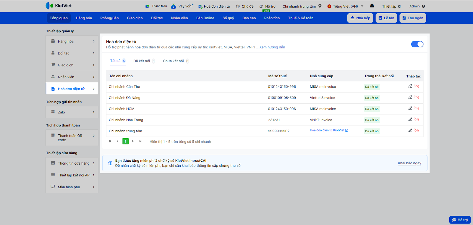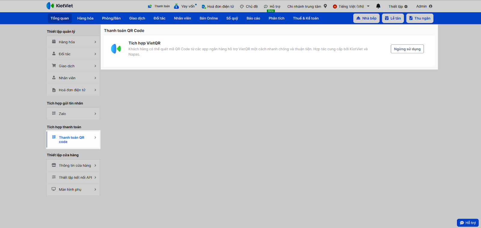 - Tích hợp hiệu quả: Kích hoạt các kết nối quan trọng như Tích hợp thanh toán VietQR.