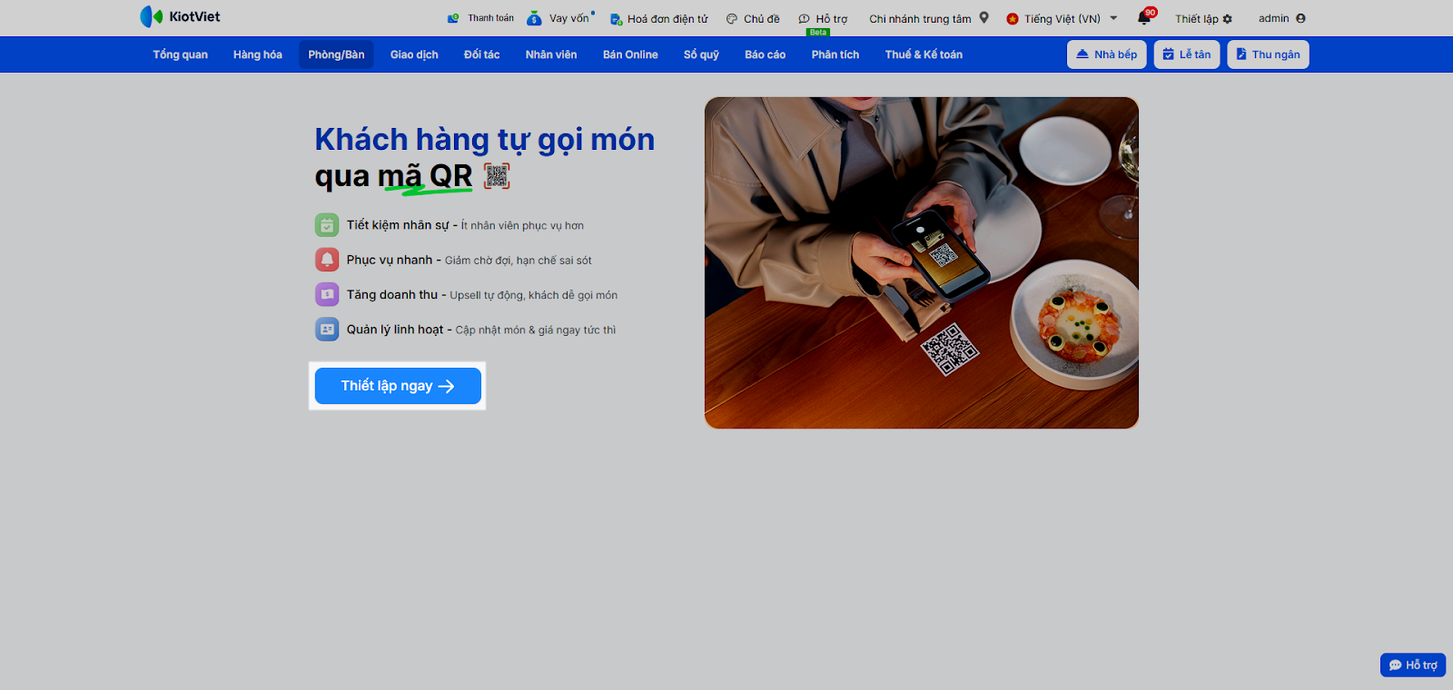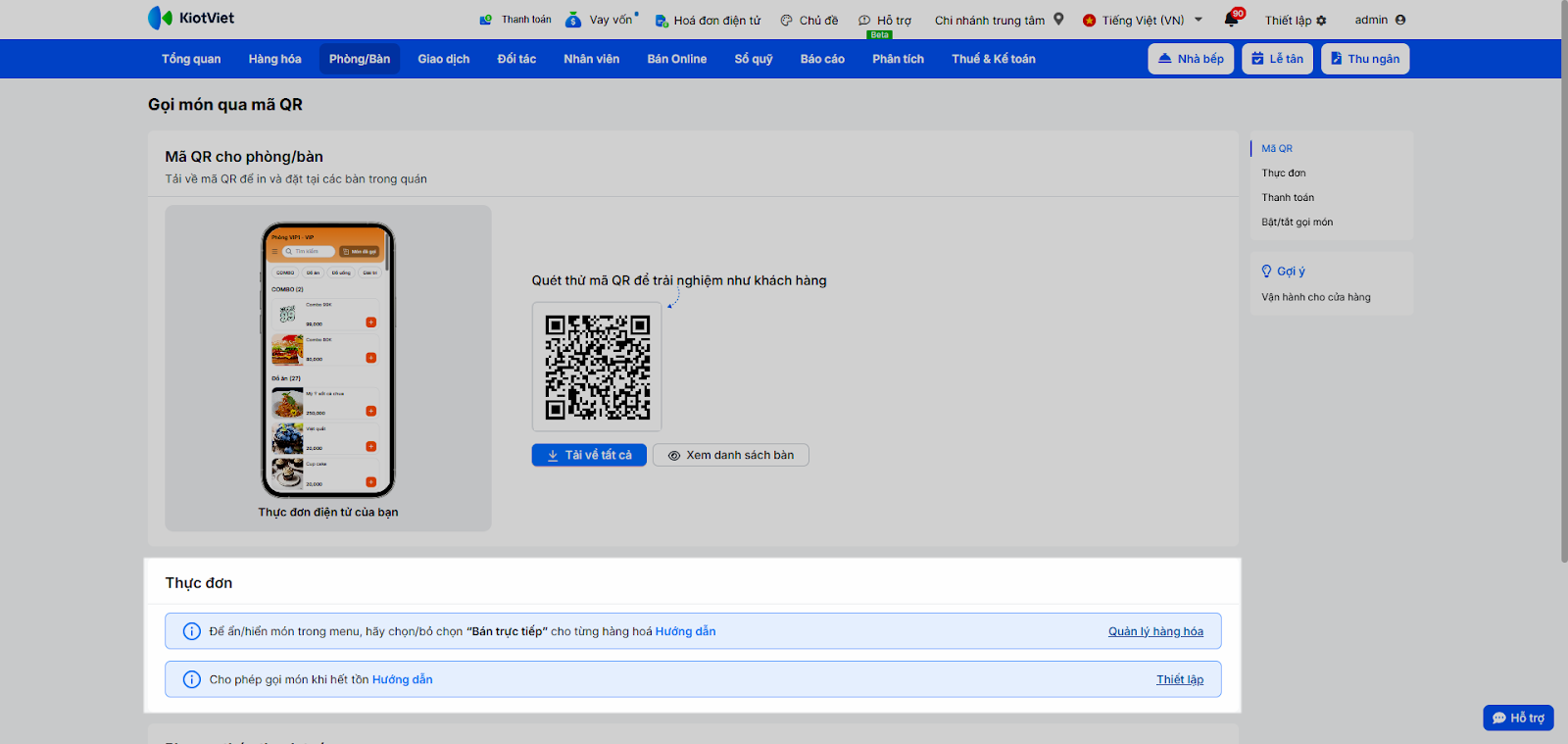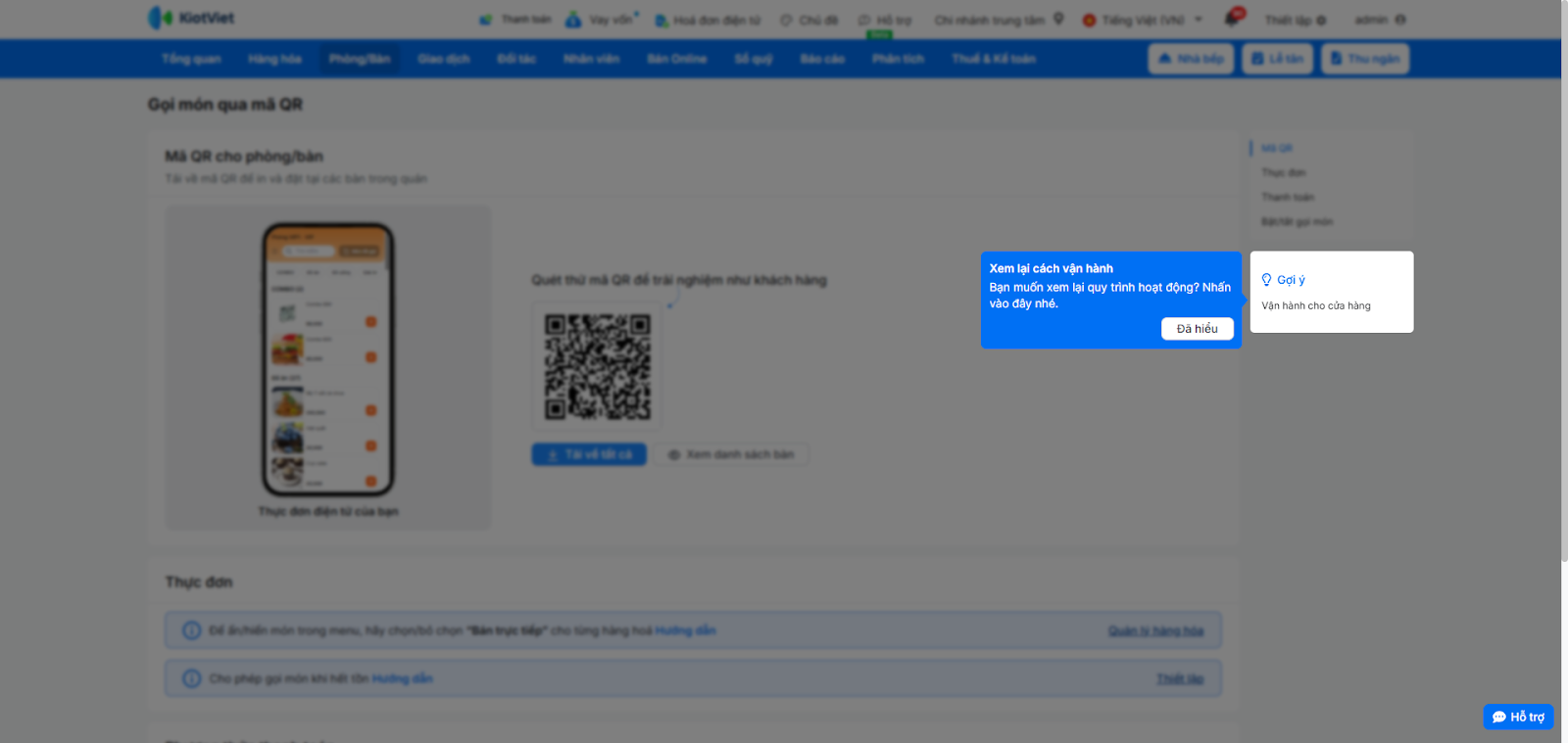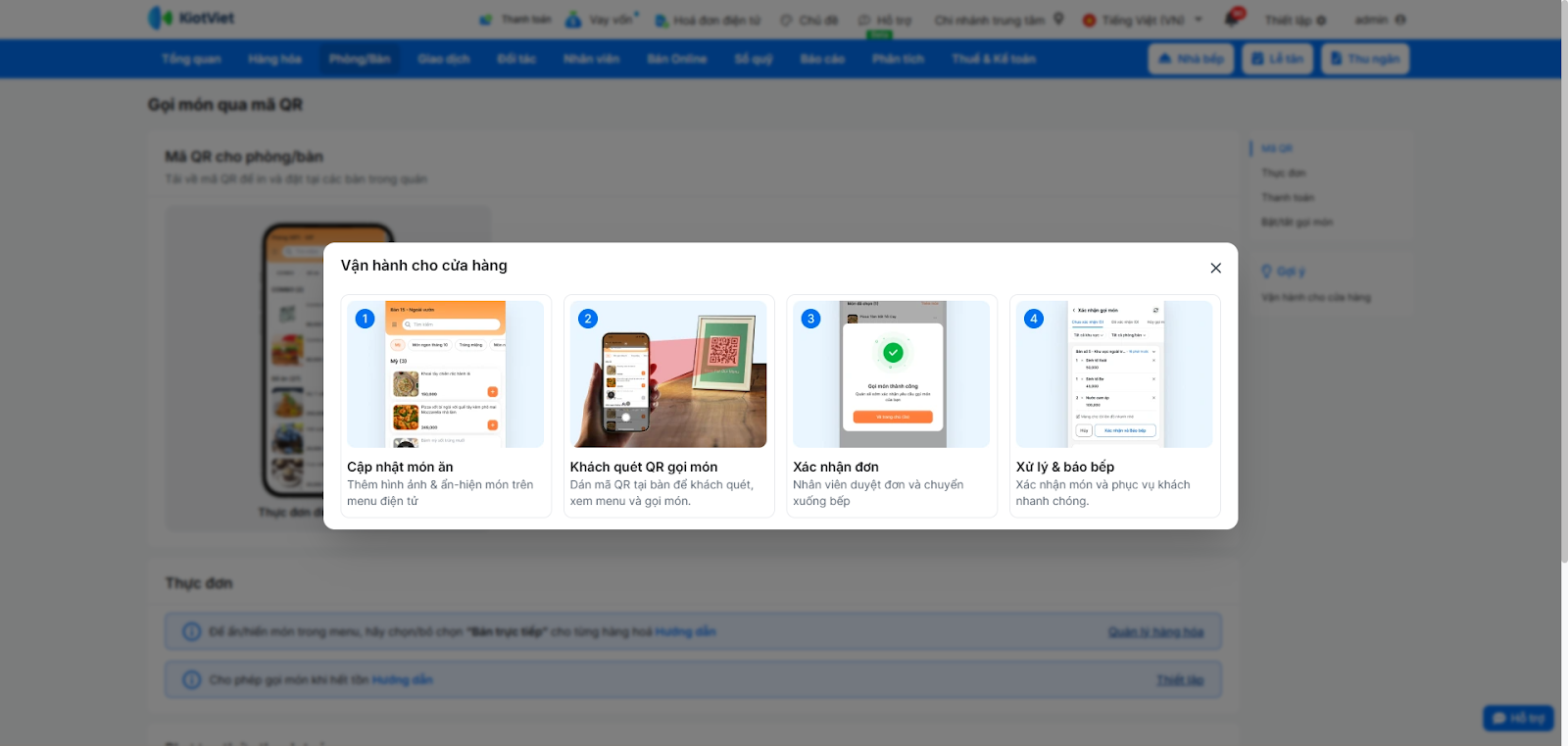 - Tình huống: Bạn là chủ nhà hàng và muốn bắt đầu triển khai hình thức gọi món qua QR để hiện đại hóa quy trình phục vụ. Bạn cần kích hoạt tính năng và cài đặt các thông số cơ bản như thực đơn và phương thức thanh toán.