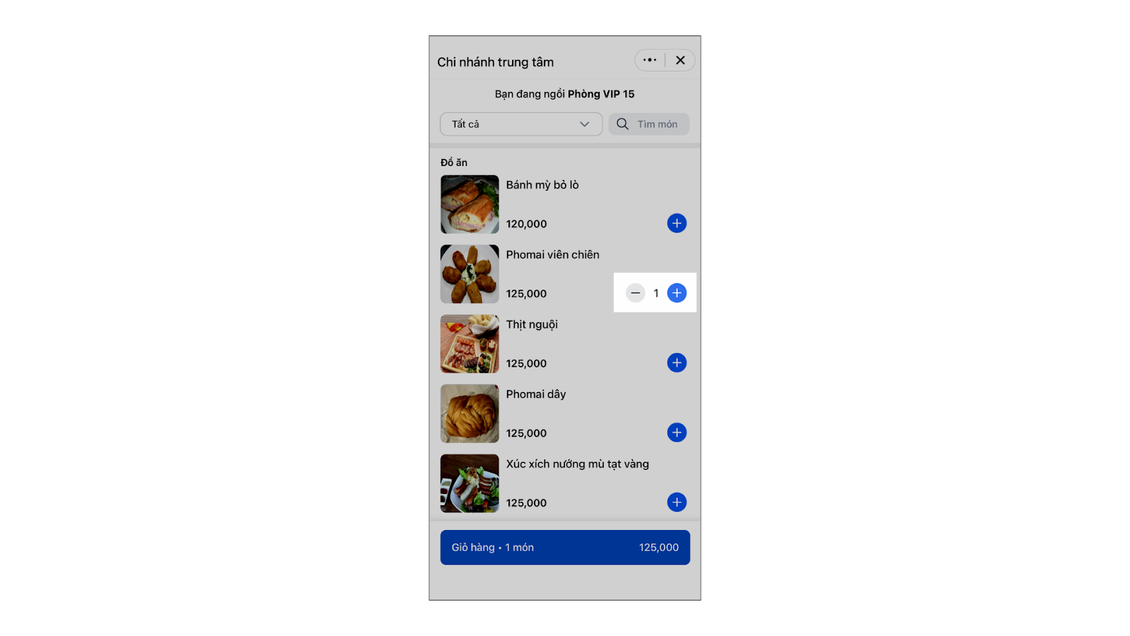 - Khách hàng chạm vào món ăn/đồ uống muốn gọi.