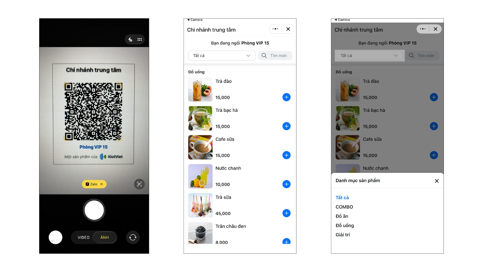 - Khách hàng sử dụng camera điện thoại hoặc ứng dụng Zalo để quét mã QR đã được đặt tại bàn.