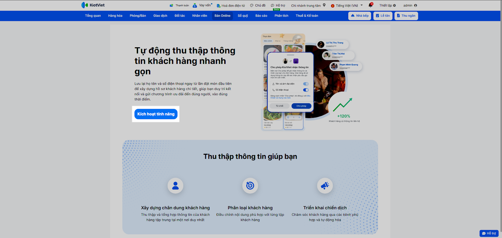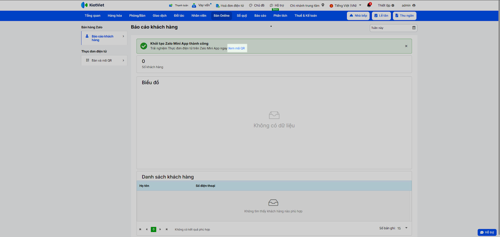 - Thu thập thông tin khách hàng: Tự động thống kê các khách hàng mới (chưa có SĐT trên KiotViet) gọi món qua Zalo.