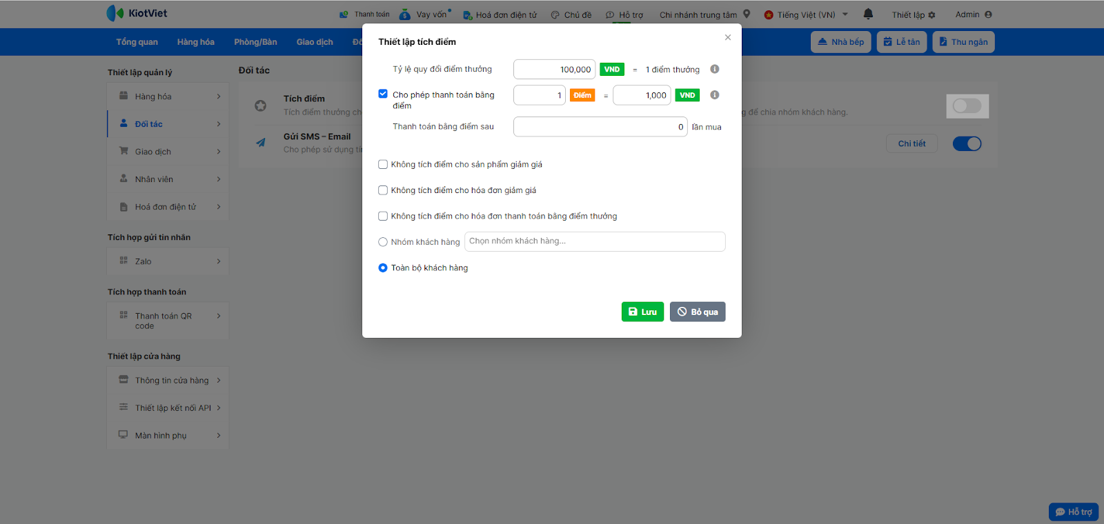 - Thiết lập linh hoạt: Cho phép bạn tùy chỉnh tỷ lệ quy đổi điểm (ví dụ: 100.000 VNĐ = 1 điểm) và tỷ lệ tiêu điểm (ví dụ: 1 điểm = 1.000 VNĐ).
