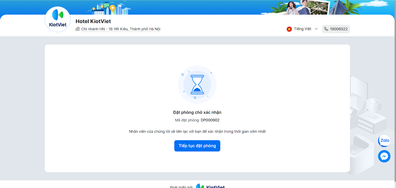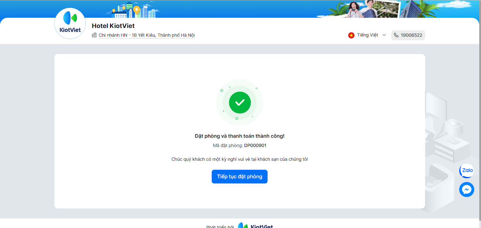 - Hệ thống báo đặt phòng thành công và gửi mã đặt phòng cho khách.