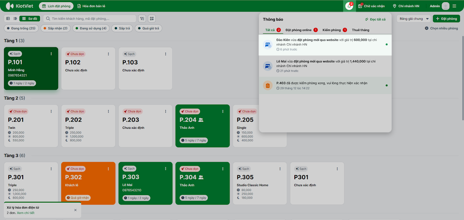 - Tình huống: Bạn nhận được thông báo có khách đặt phòng qua website hoặc đang kiểm tra lịch phòng và thấy đơn chờ xác nhận.