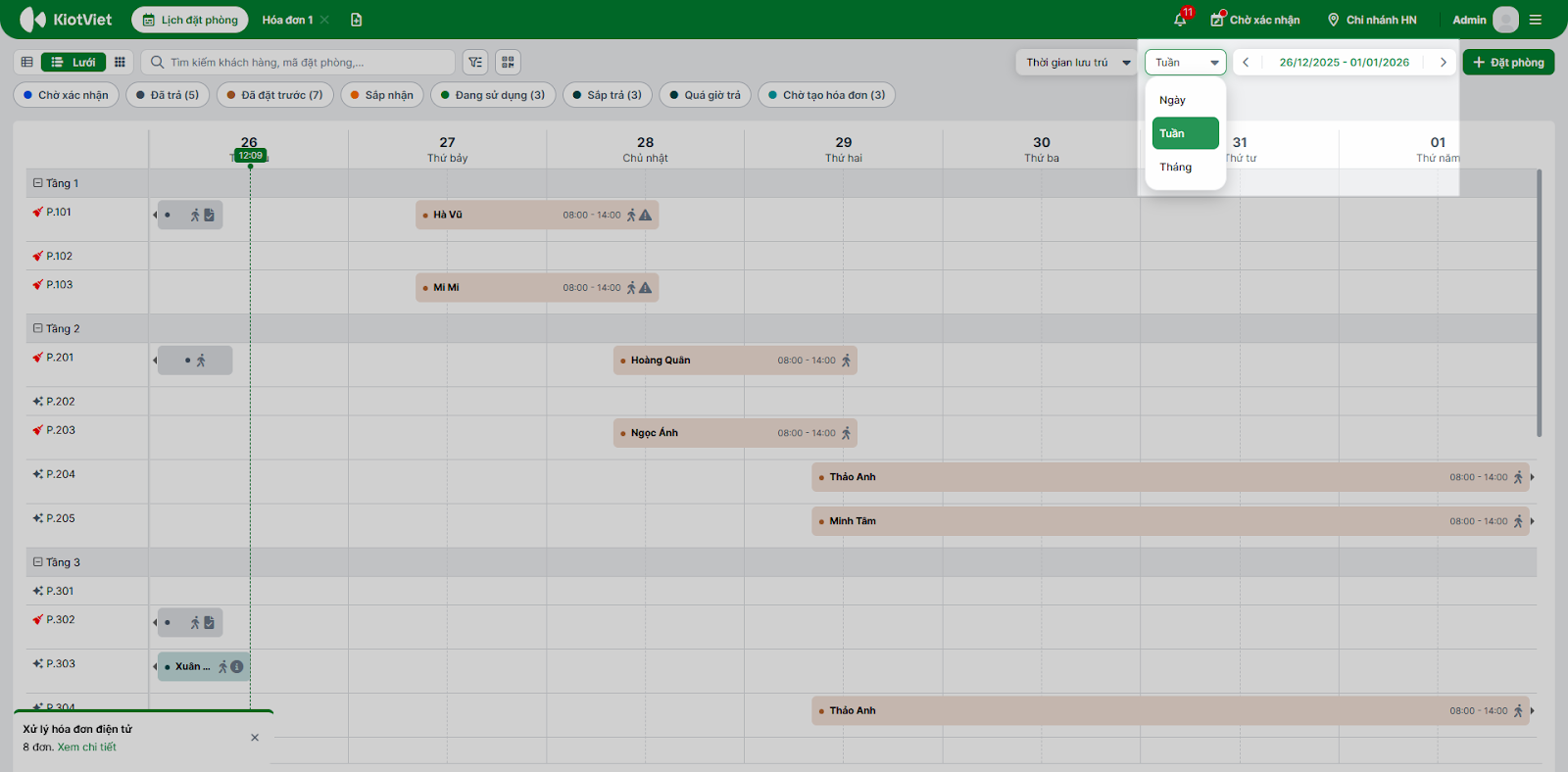 - Tùy chỉnh hiển thị theo Ngày/Tuần/Tháng để có kế hoạch đón tiếp phù hợp.