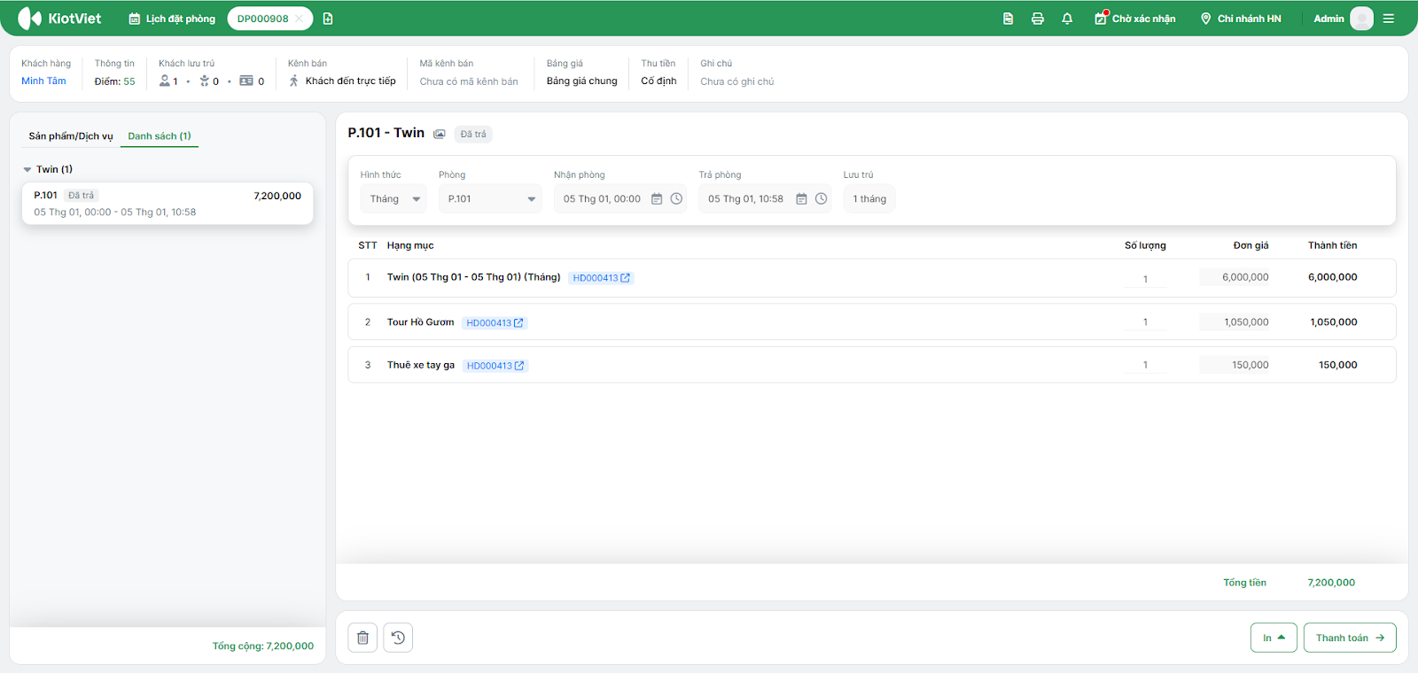 - Chính xác & Minh bạch: Theo dõi lịch sử thanh toán nhiều lần của khách hàng (trong trường hợp ghi nợ) và liên kết trực tiếp với phiếu đặt phòng gốc.