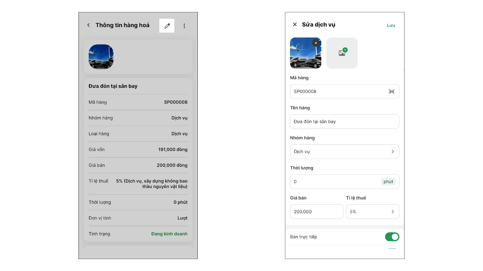 - Tại danh sách Hàng hóa, tìm và chạm vào dịch vụ cần sửa.