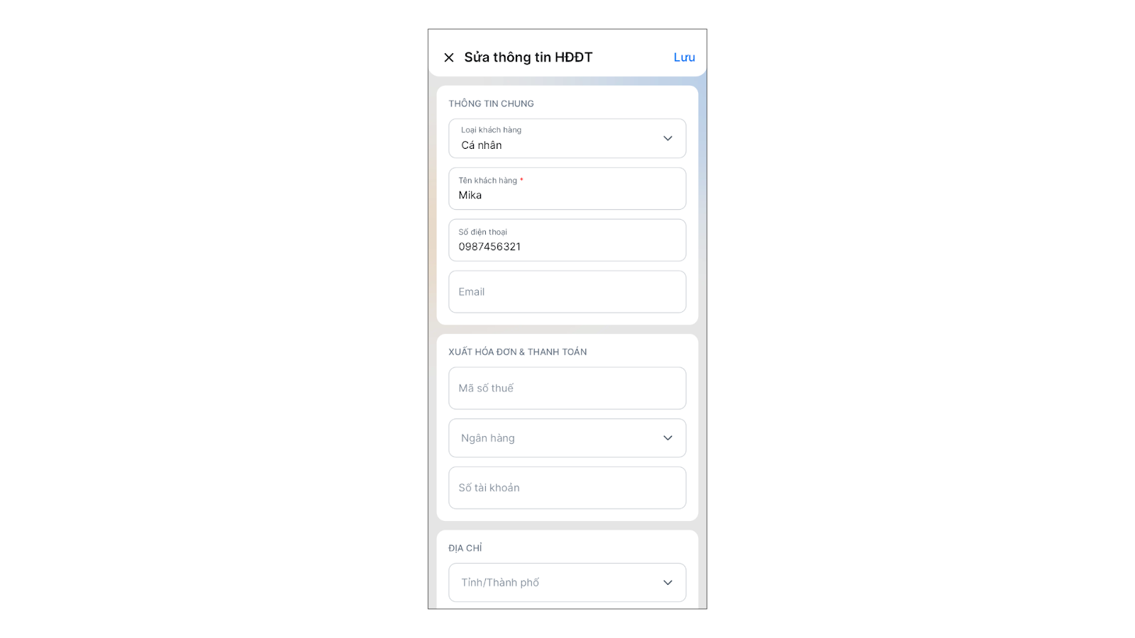 - Lưu ý quan trọng: Để sử dụng được tính năng này, các thiết lập ban đầu (như kết nối với nhà cung cấp HĐĐT) và việc phân quyền cho nhân viên vẫn cần được thực hiện trên giao diện web của máy tính.