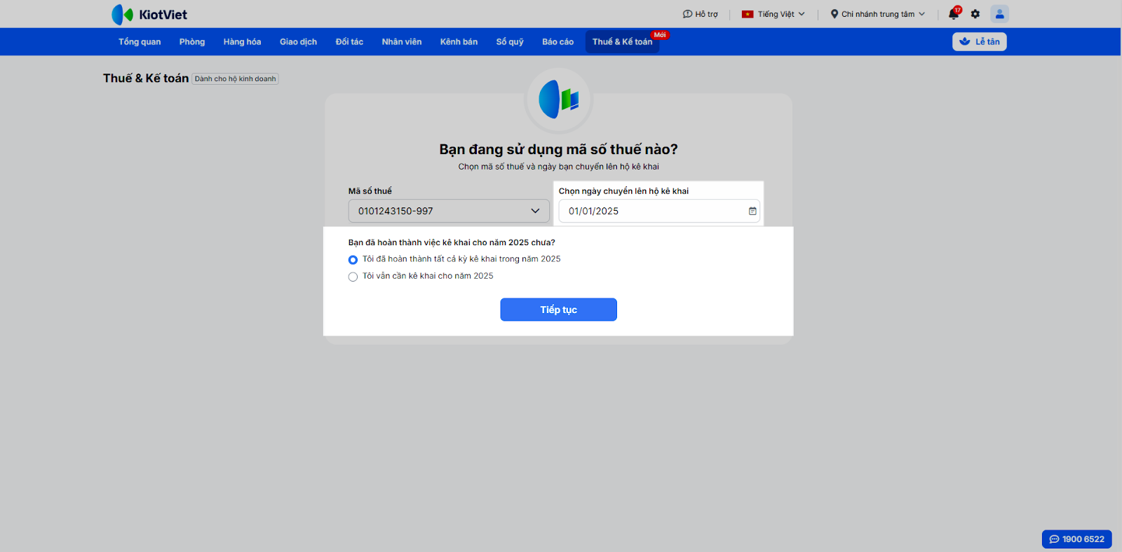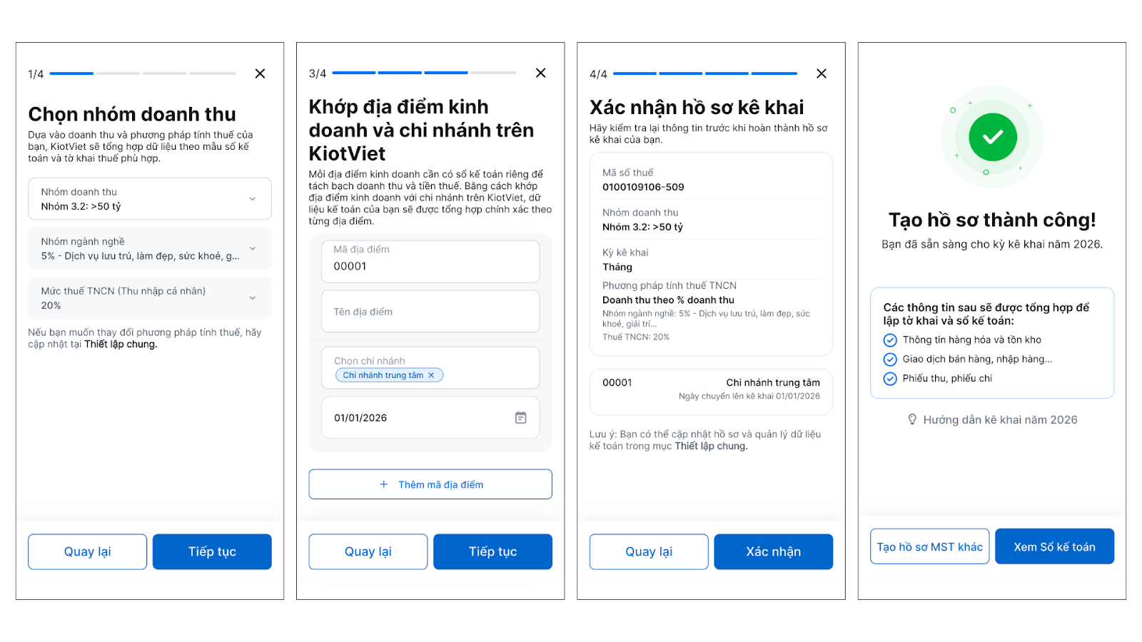 - Bạn nhấn Tiếp tục → hệ thống chuyển sang luồng thiết lập cho năm 2026.