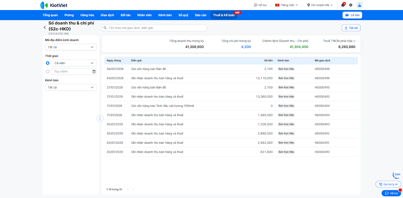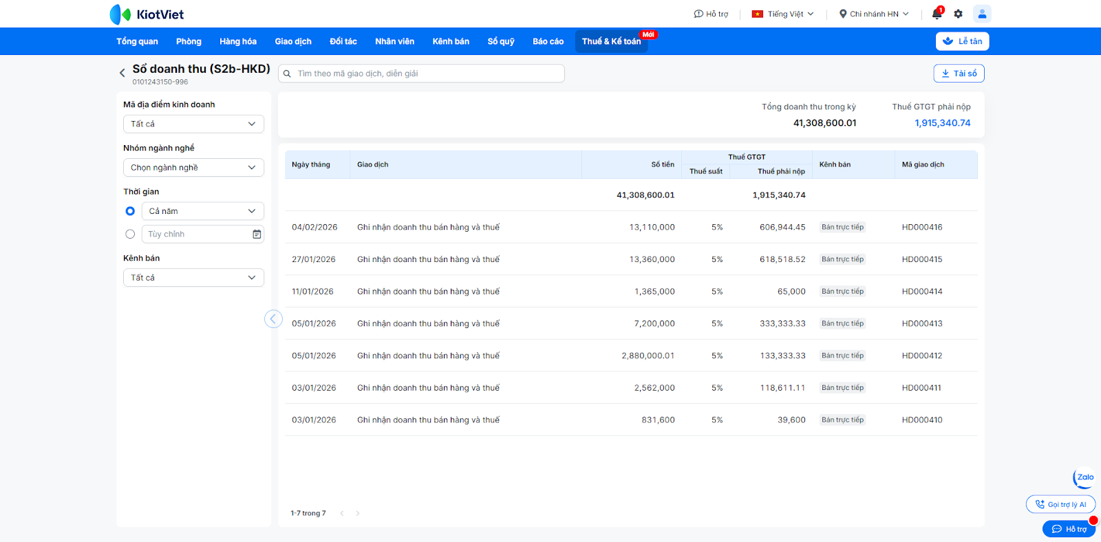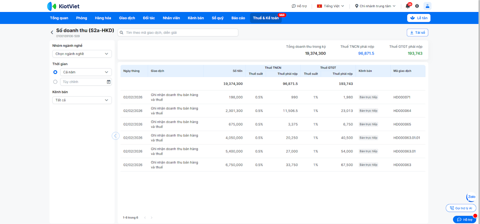 Hệ thống KiotViet hỗ trợ đáp ứng sổ sách cho các nhóm đối tượng theo quy định: