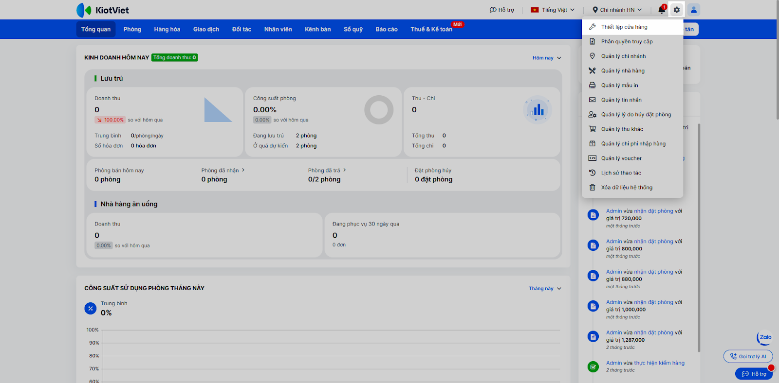 (1) Truy cập vào Thiết lập → Thiết lập cửa hàng.