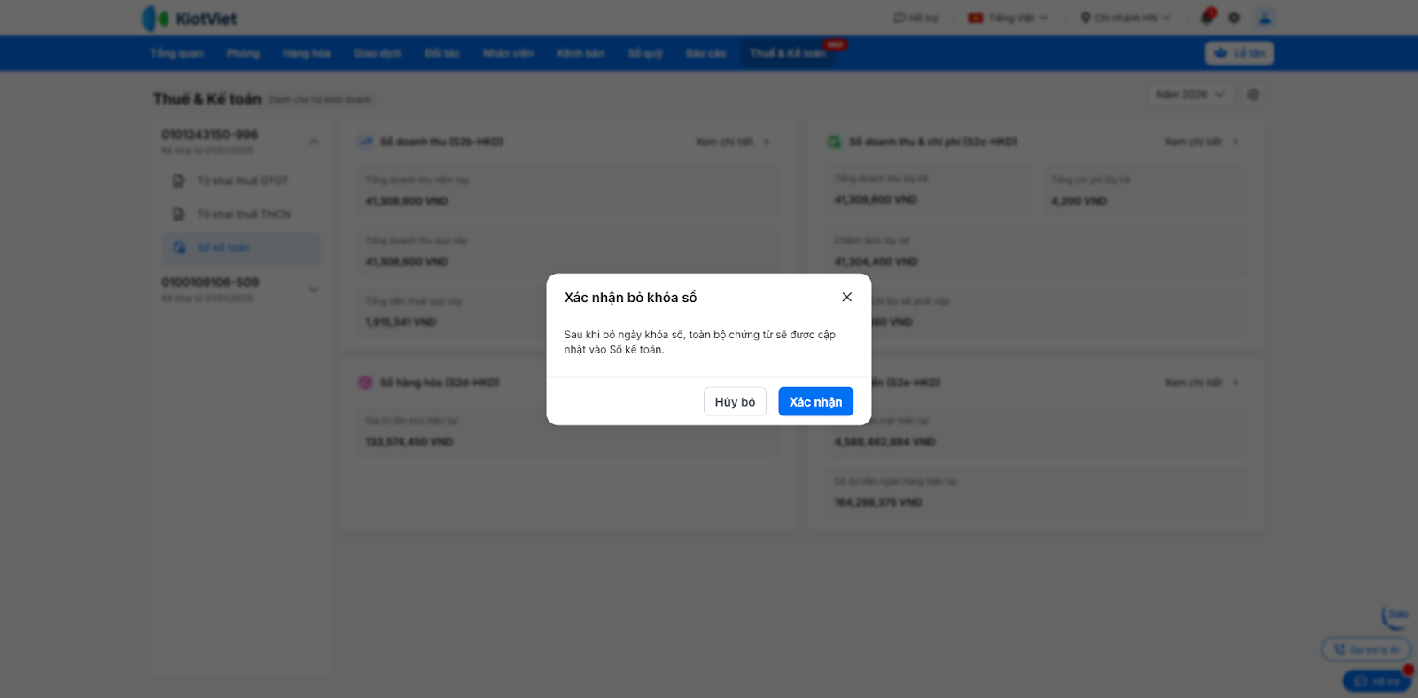 (2) Chọn Xác nhận để chắc chắn bỏ khóa sổ.
