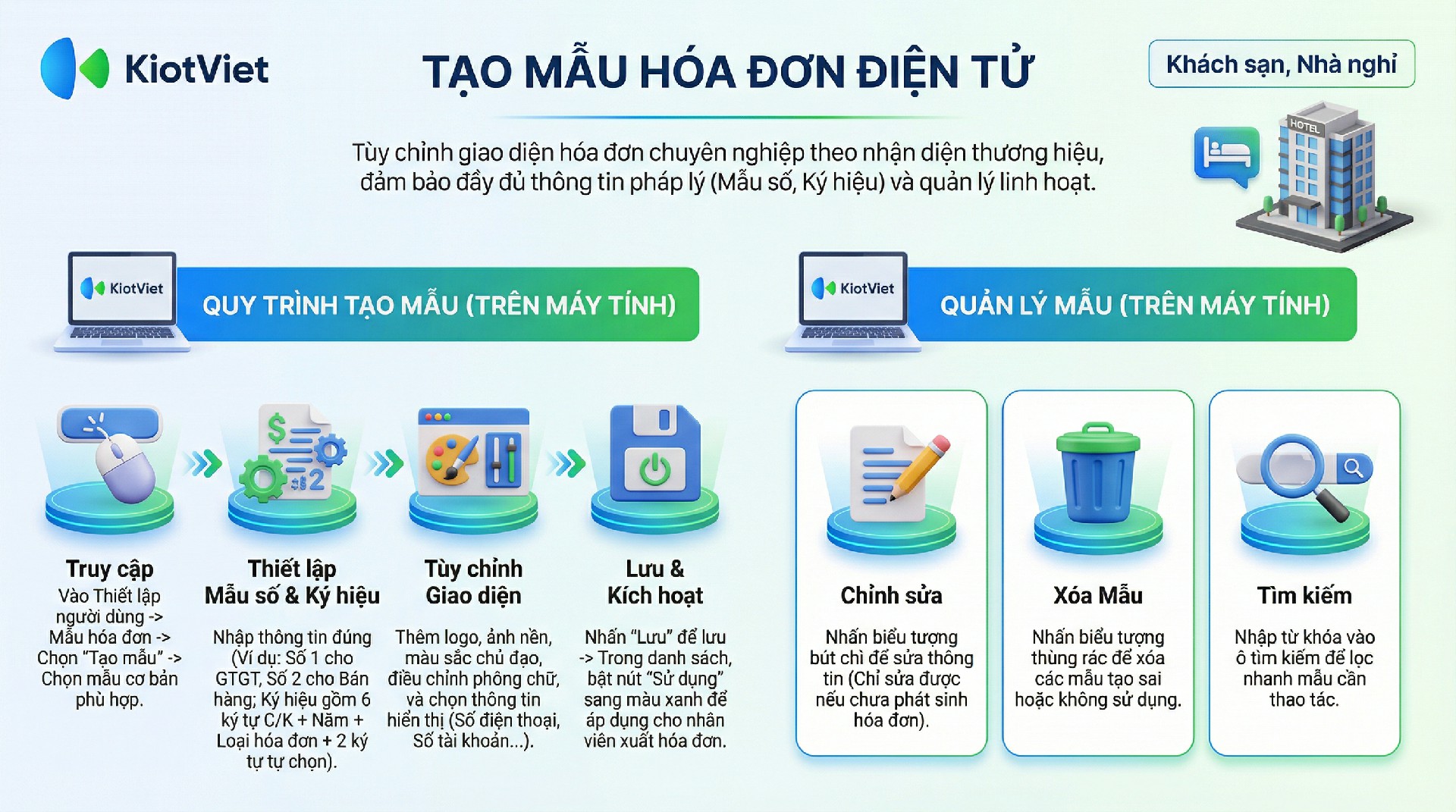 Phần này hướng dẫn các thao tác cơ bản nhất để bạn bắt đầu tạo và quản lý mẫu hóa đơn.