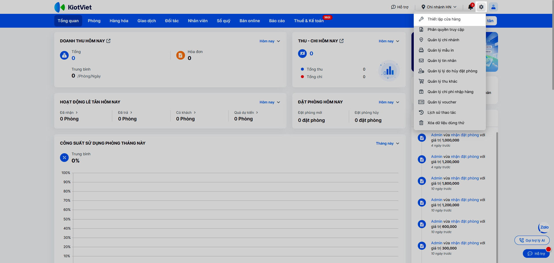 – Trên màn hình Quản lý, từ menu Thiết lập, bạn chọn Thiết lập cửa hàng.