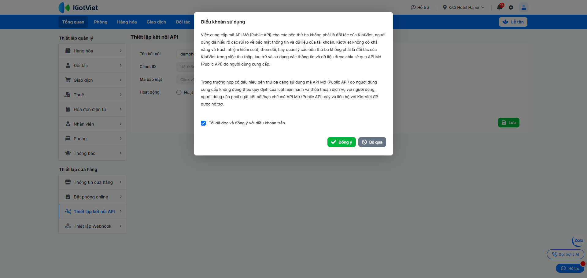 – Mã API trên KiotViet chỉ hiển thị trên tài khoản có vai trò admin của chủ gian hàng.