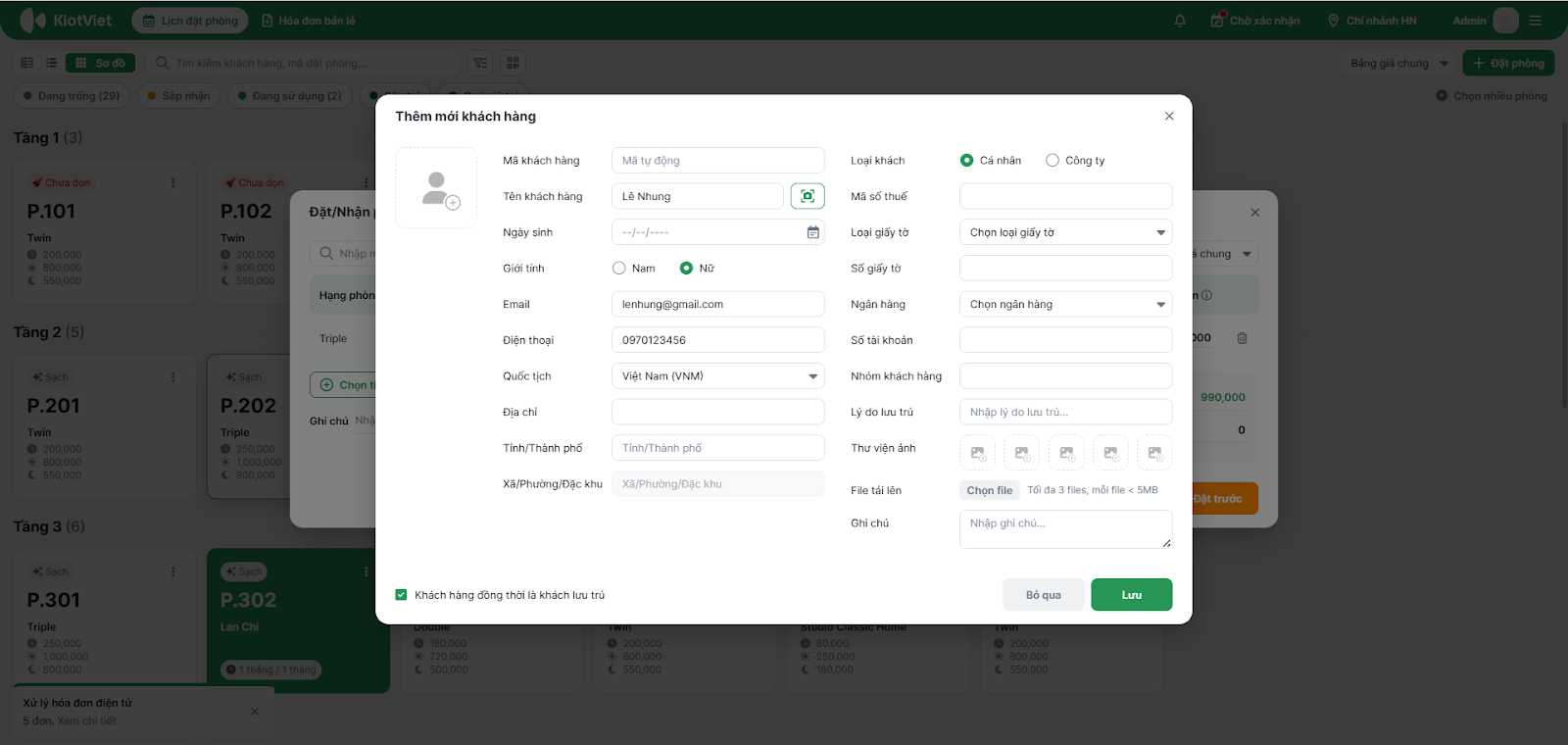 2. Thêm mới và cập nhật thông tin khách