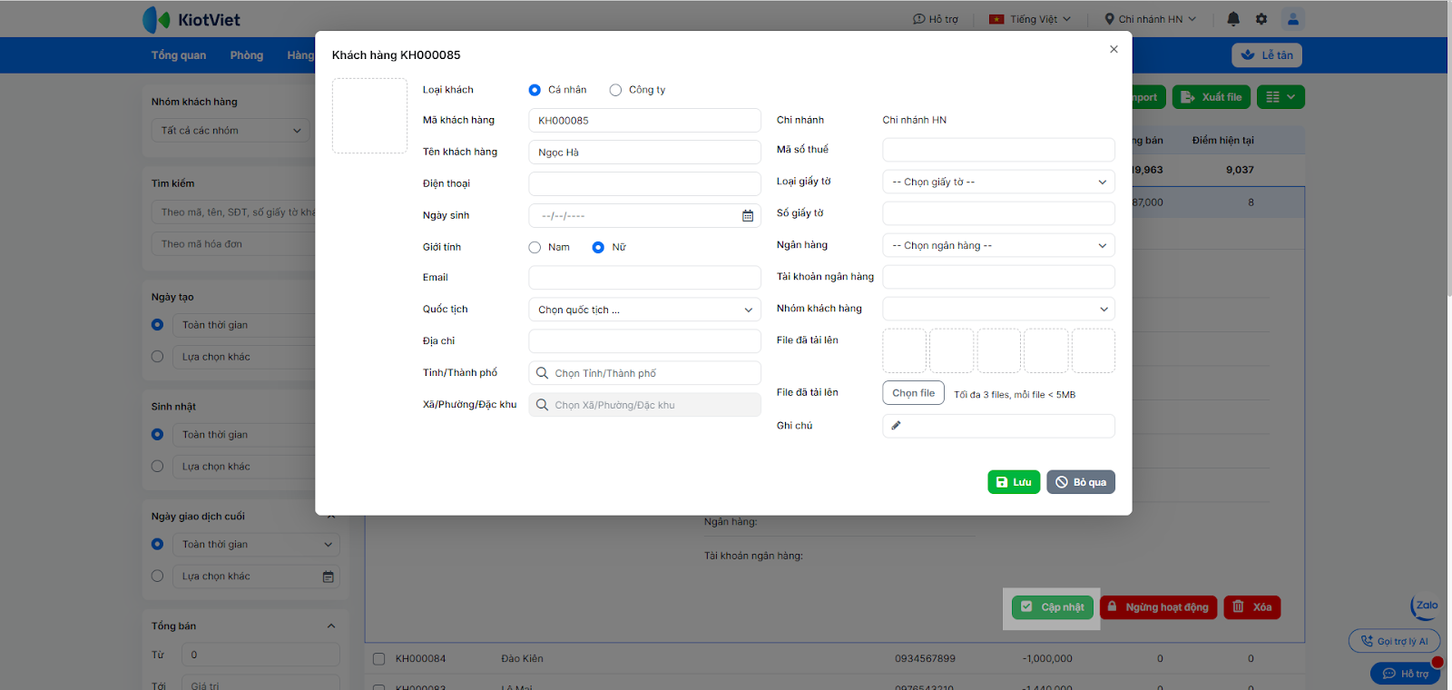 3. Cập nhật, ngừng hoạt động, xóa khách hàng