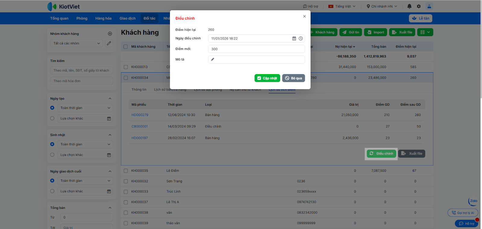 - 2. Quản lý và điều chỉnh tích điểm