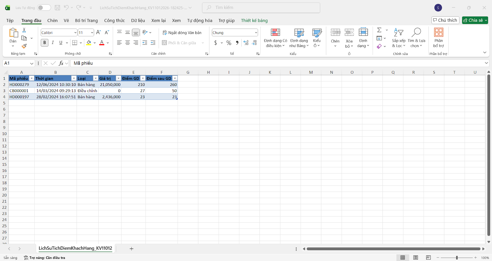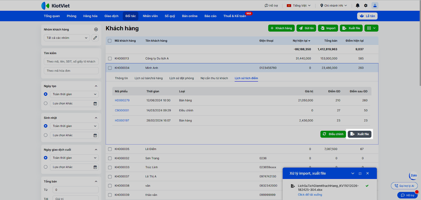 - Để xuất file lịch sử tích điểm gửi khách hàng hoặc lưu trữ thông tin,