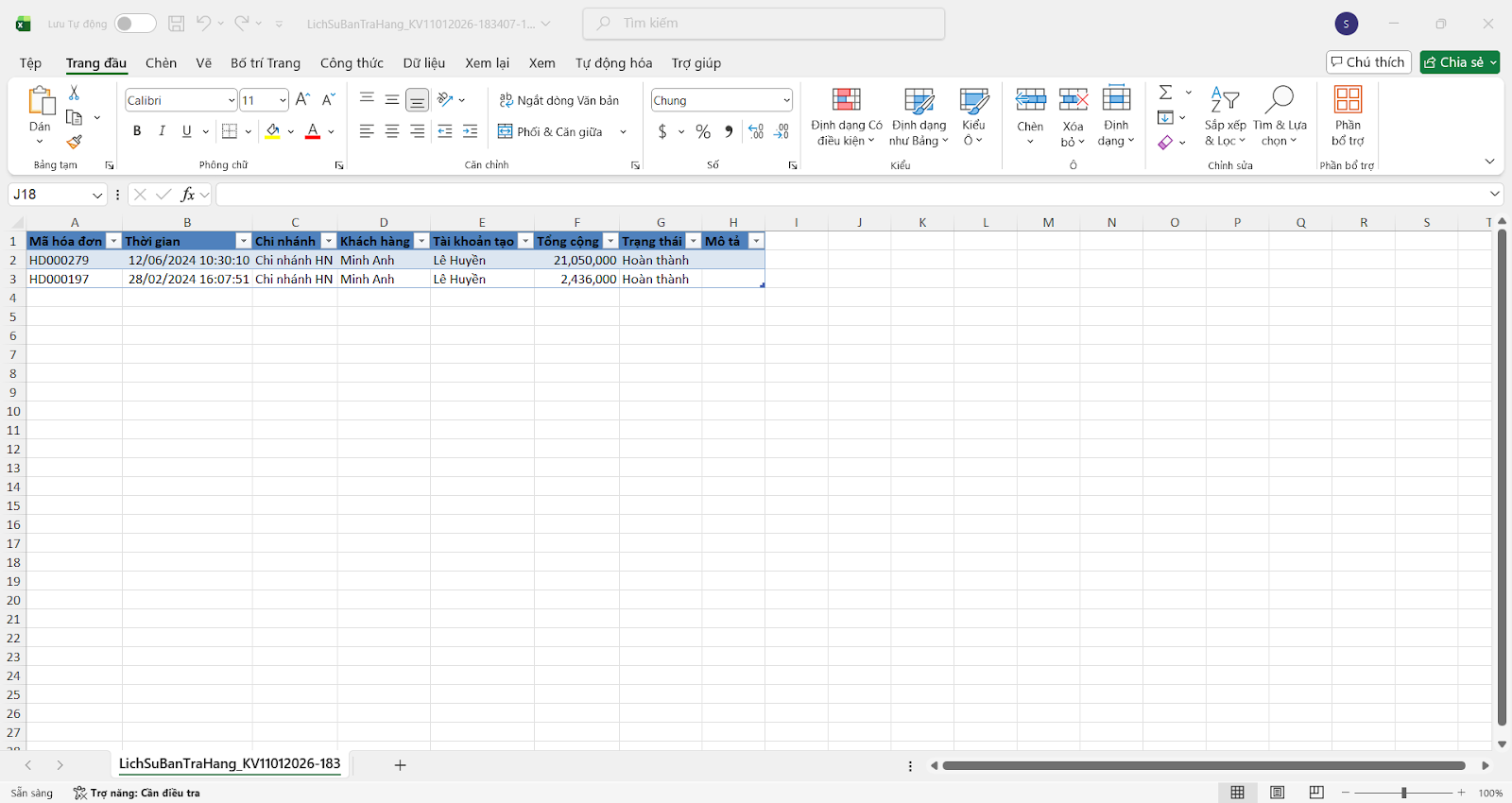 - Nhấn Xuất file để tải danh sách này về file Excel và gửi cho khách hàng đối soát nếu cần.