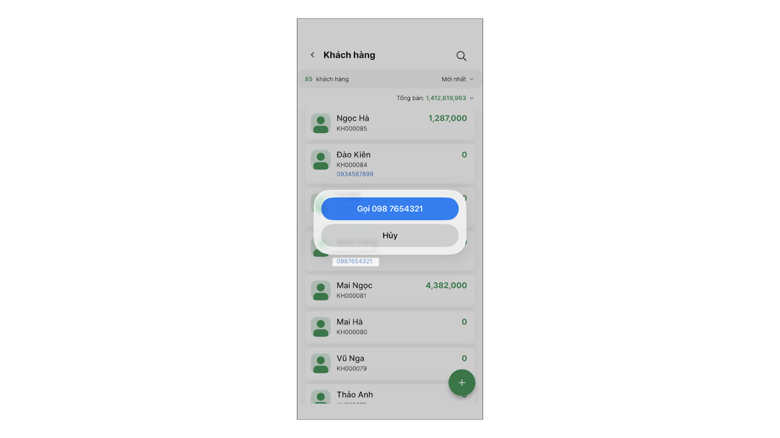 - Trên danh sách hoặc chi tiết khách hàng → chạm vào số điện thoại → bạn thực hiện cuộc gọi ngay lập tức mà không cần bấm số thủ công.