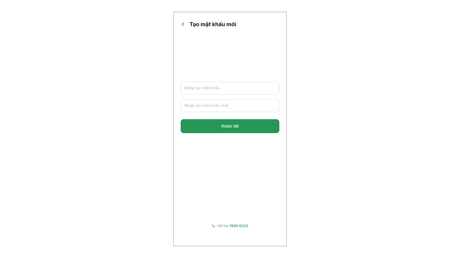 - Nhập Mật khẩu mới và chọn Hoàn tất để chuyển đến màn hình đăng nhập.