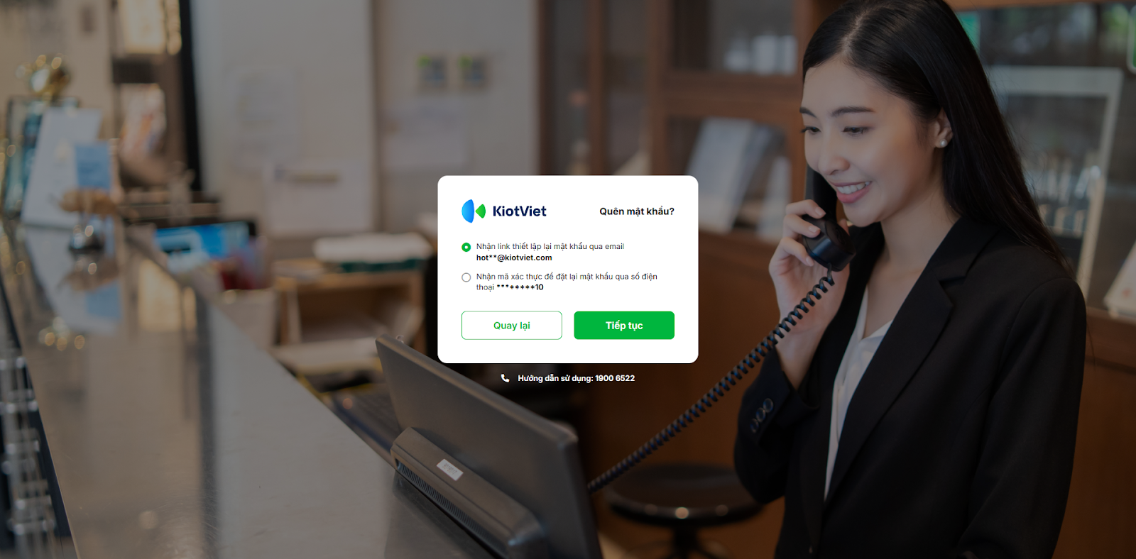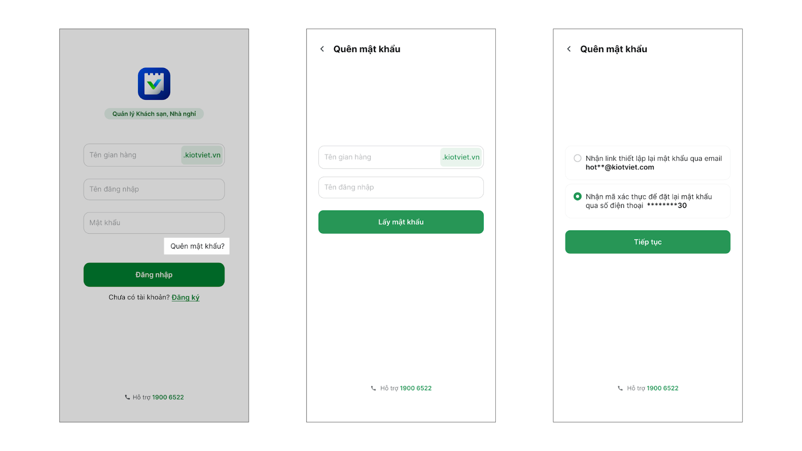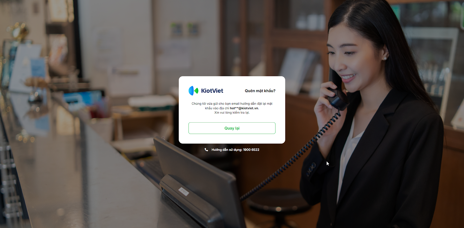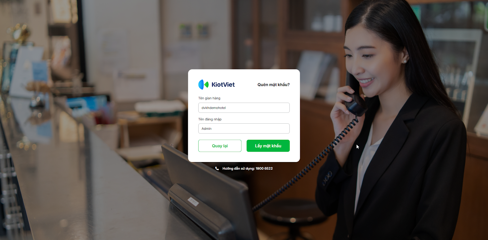 - Tình huống: Chủ gian hàng hoặc nhân viên quên mật khẩu khi đăng nhập trên ứng dụng KiotViet Hotel.