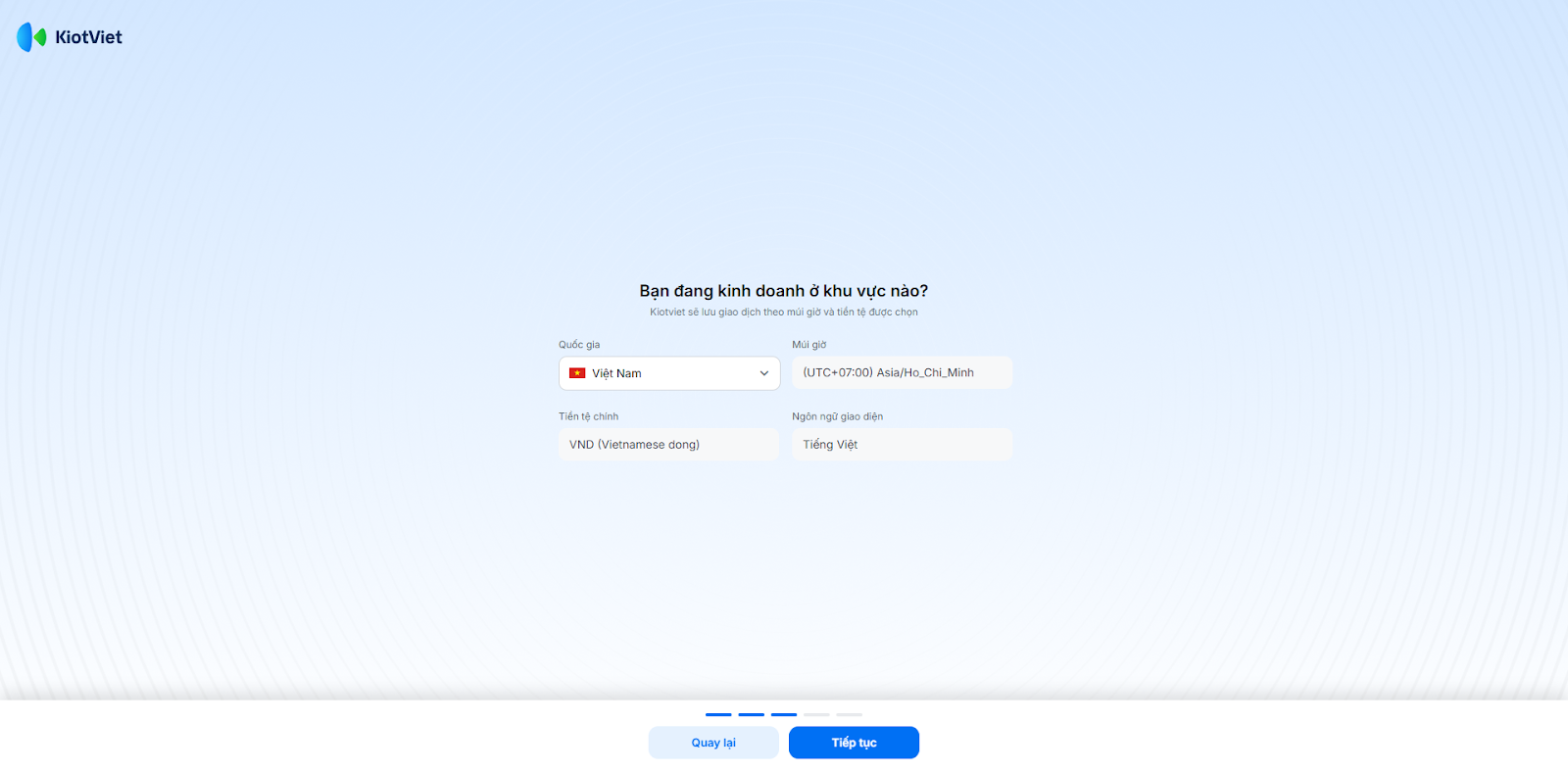 - Chọn khu vực đang kinh doanh → nhấn Tiếp tục.