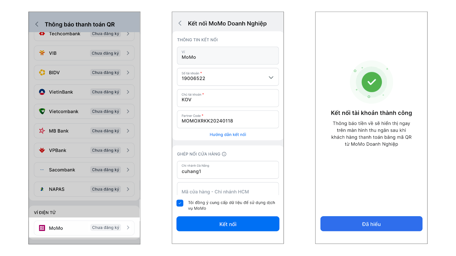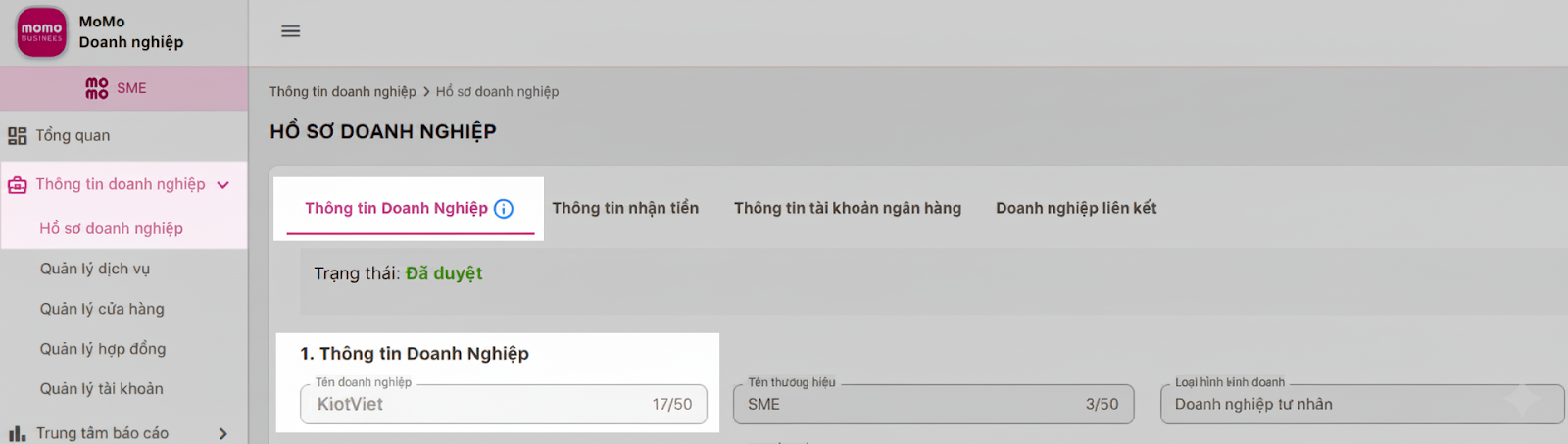 1. Kết nối tài khoản MoMo Doanh nghiệp
