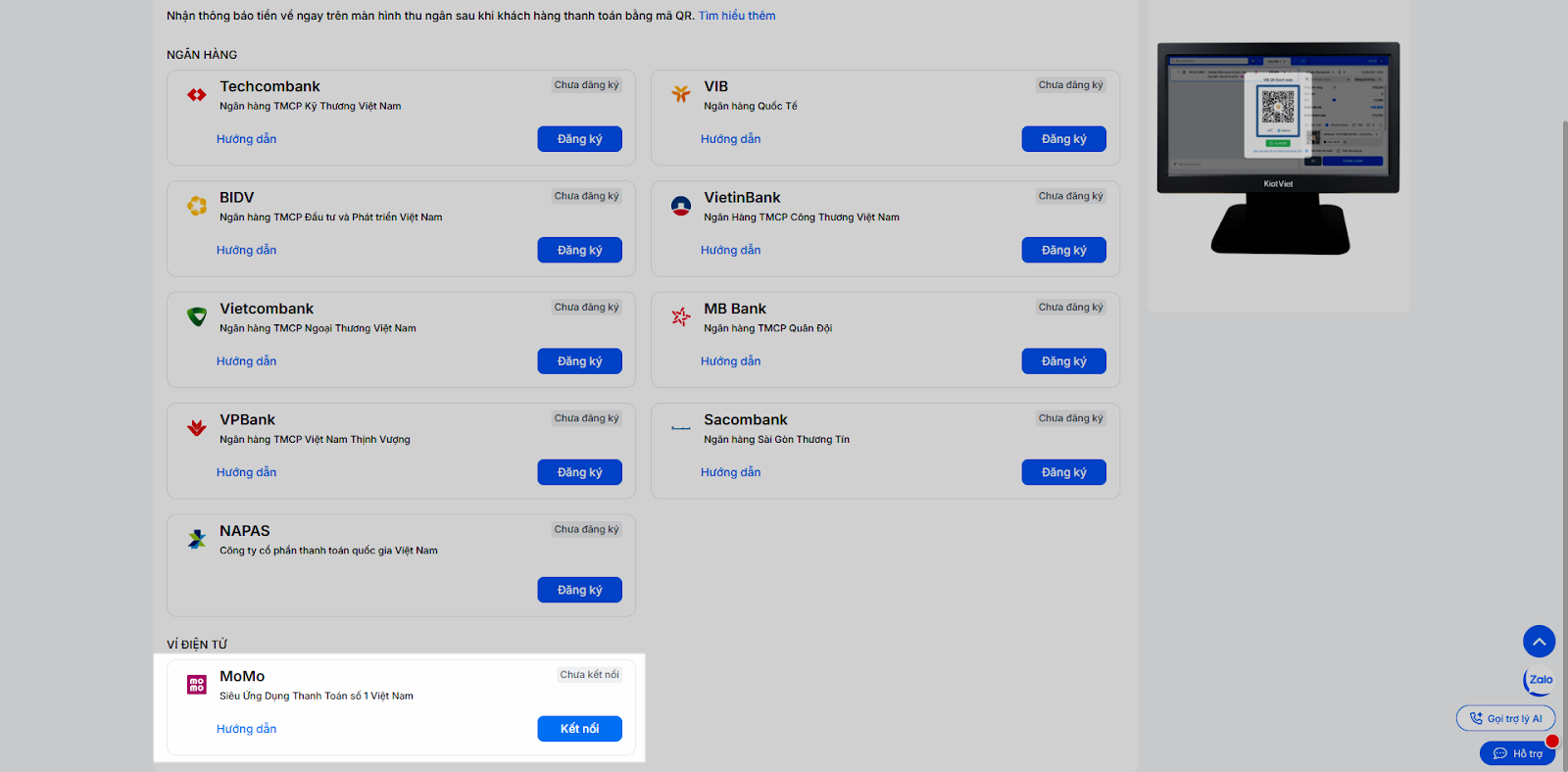 Để kích hoạt tính năng, bạn cần lấy thông tin từ tài khoản MoMo Business và điền vào phần thiết lập trên KiotViet.