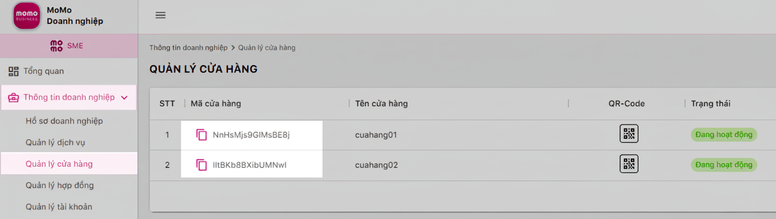 - Mã cửa hàng (Store ID): Bạn lấy thông tin trong Thông tin cửa hàng → Quản lý cửa hàng