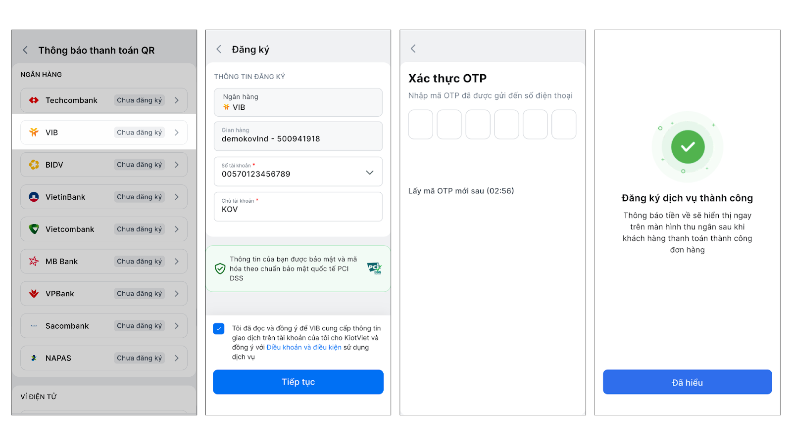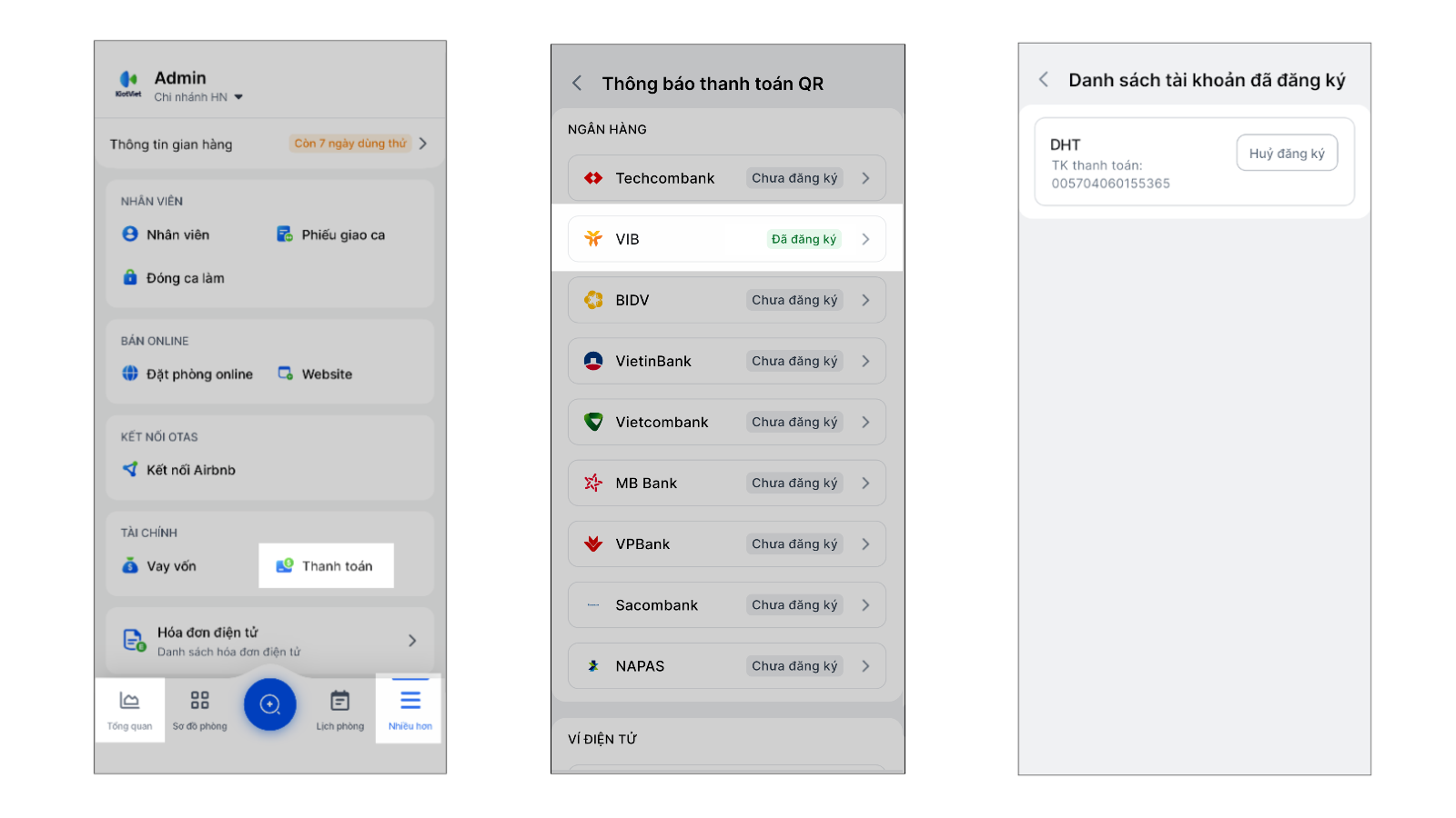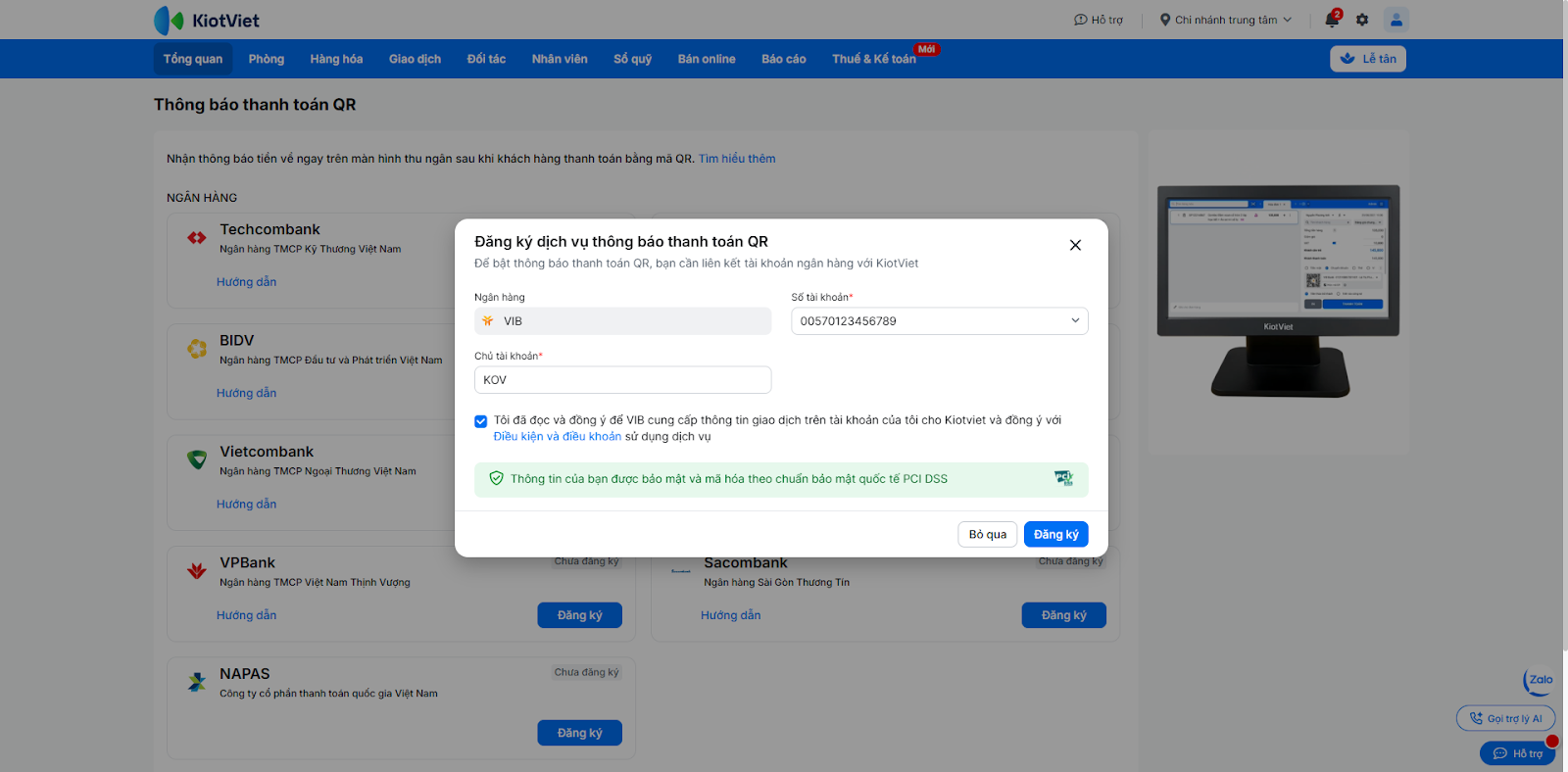 - Mỗi gian hàng KiotViet tại một thời điểm chỉ có thể liên kết với một tài khoản VIB duy nhất.