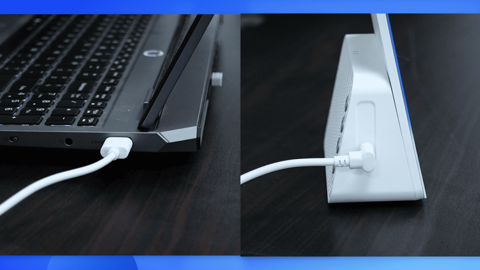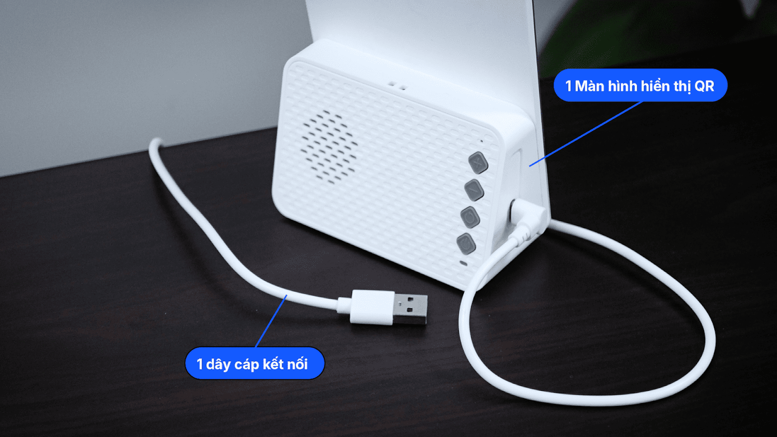 - Kết nối màn hình hiển thị QR với máy tính: Cắm đầu USB-A vào máy tính và đầu USB-C vào màn hình hiển thị.
