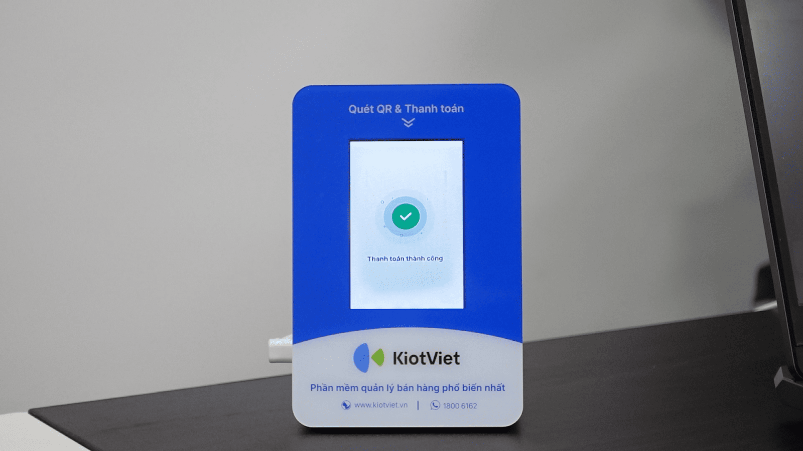 - Đối với một số ngân hàng và ví điện tử mà KiotViet có liên kết, màn hình QR có thể hiển thị biểu tượng tick xanh để thông báo giao dịch chuyển khoản đã thành công.