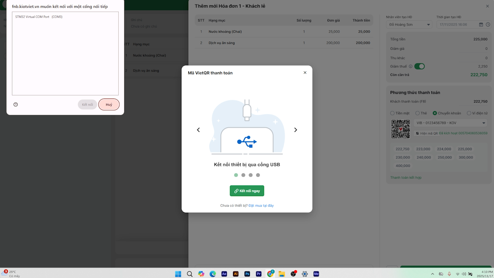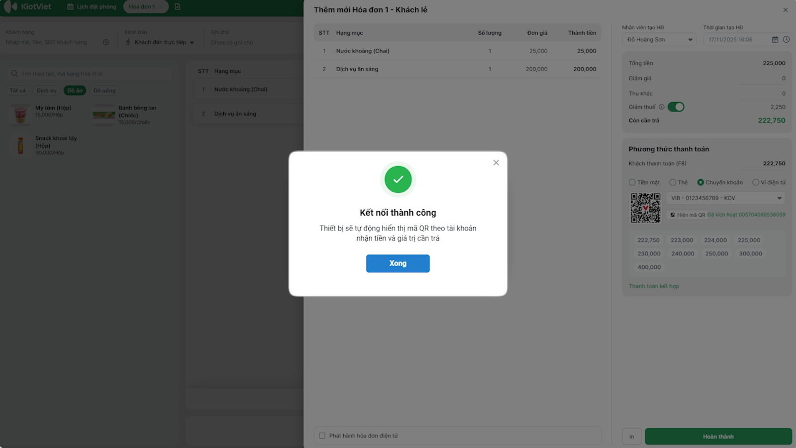3. Kết nối và hiển thị mã QR khi thanh toán