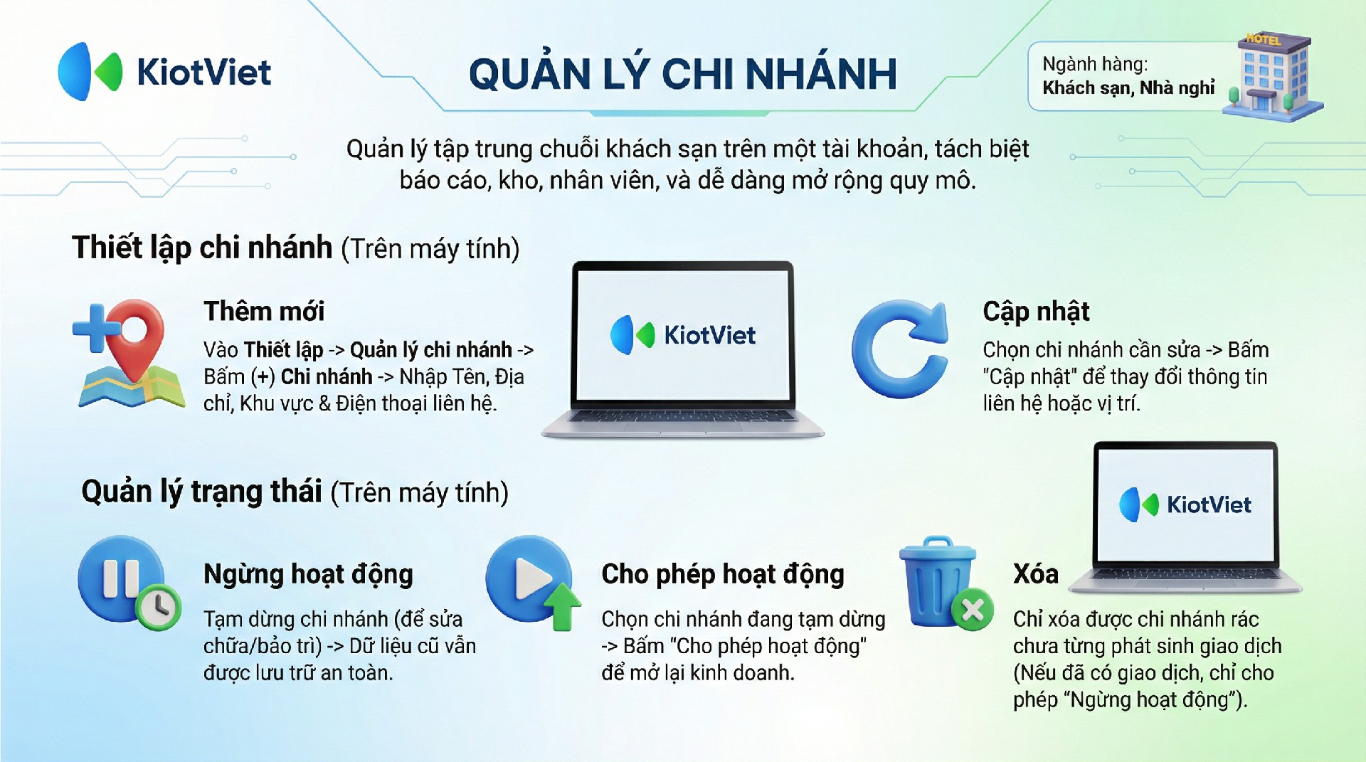 Dành cho việc quản lý trạng thái hoạt động của các chi nhánh trong chuỗi.